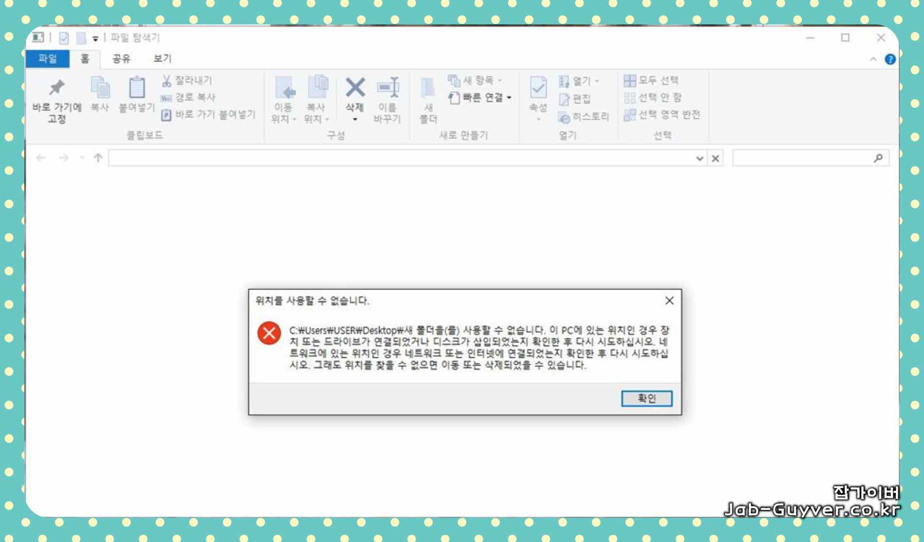 윈도우 바탕화면 위치를 사용할 수 없습니다. - 복사 붙여넣기 오류
