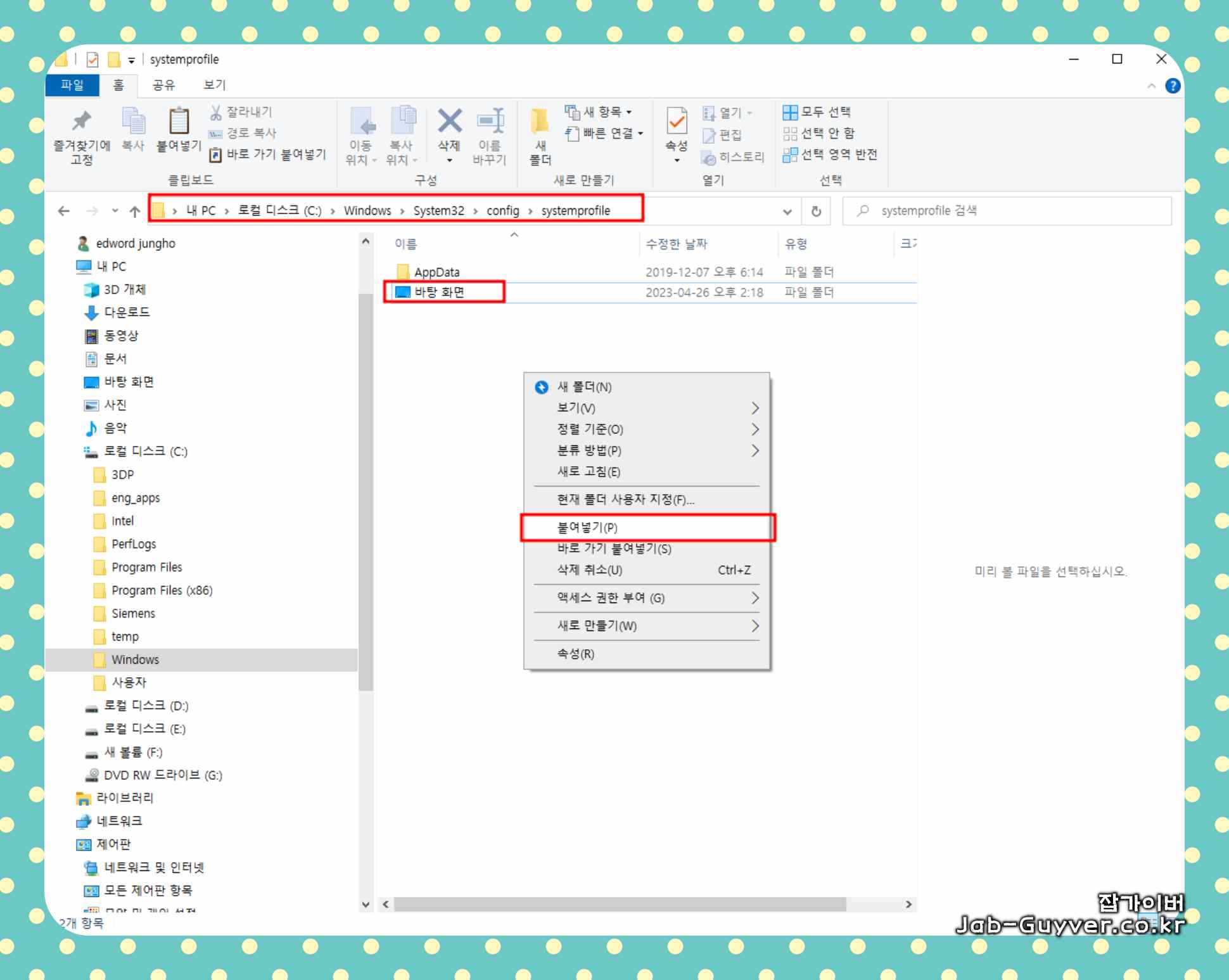 윈도우 탐색기 바탕화면 파일 복사/붙여넣기