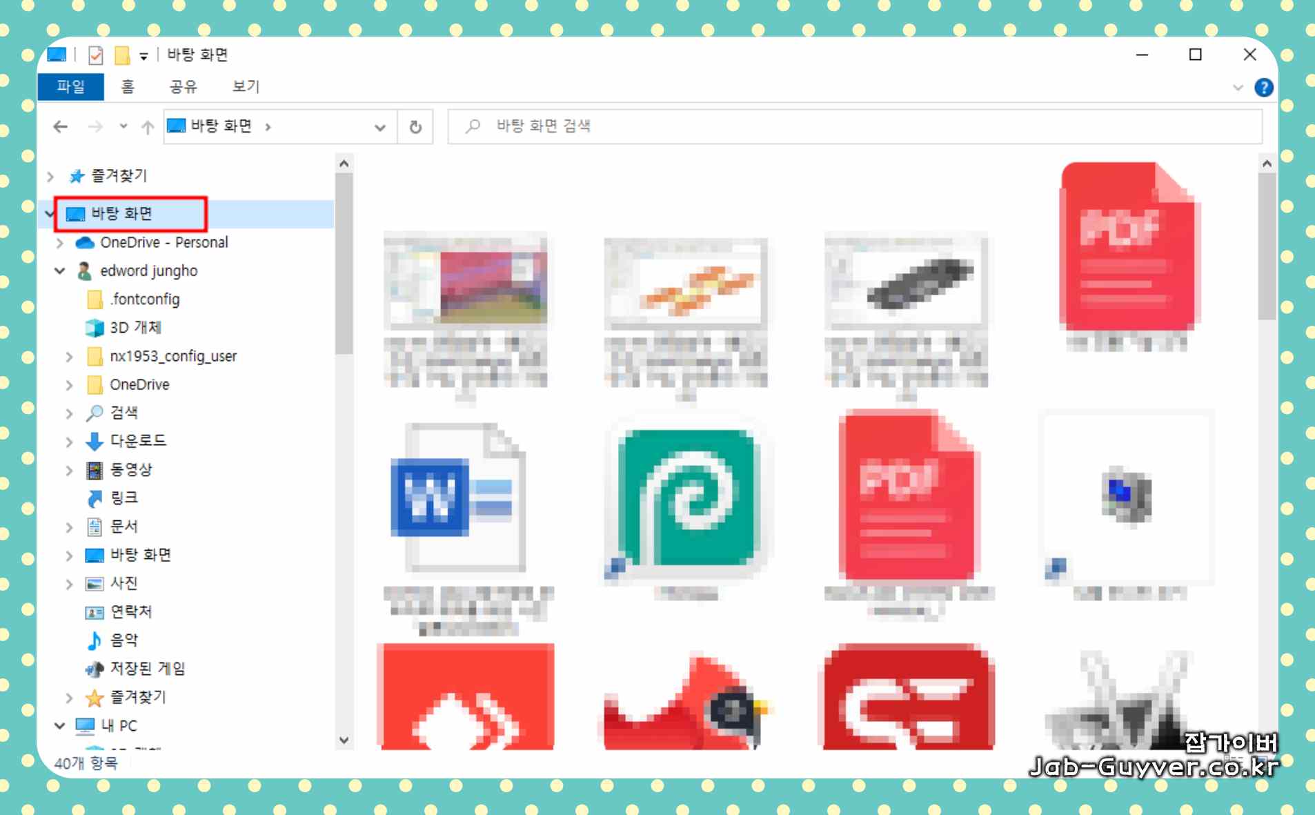 파일 탐색기를 실행 후 바탕화면으로 이동한 후, 원하는 파일 또는 폴더를 이동, 복사, 또는 붙여넣기합니다.