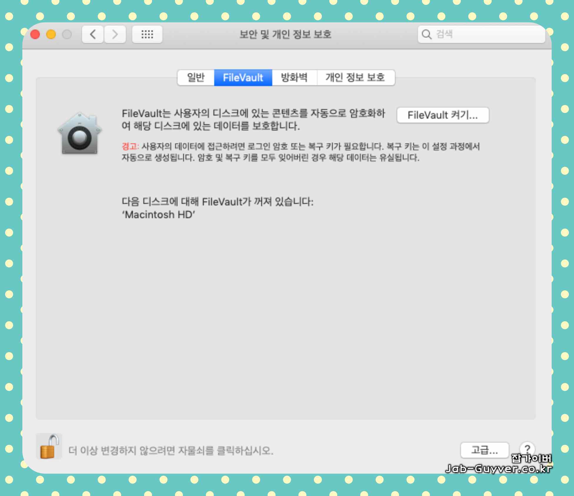 맥 시스템 보안 FileVault 끄기