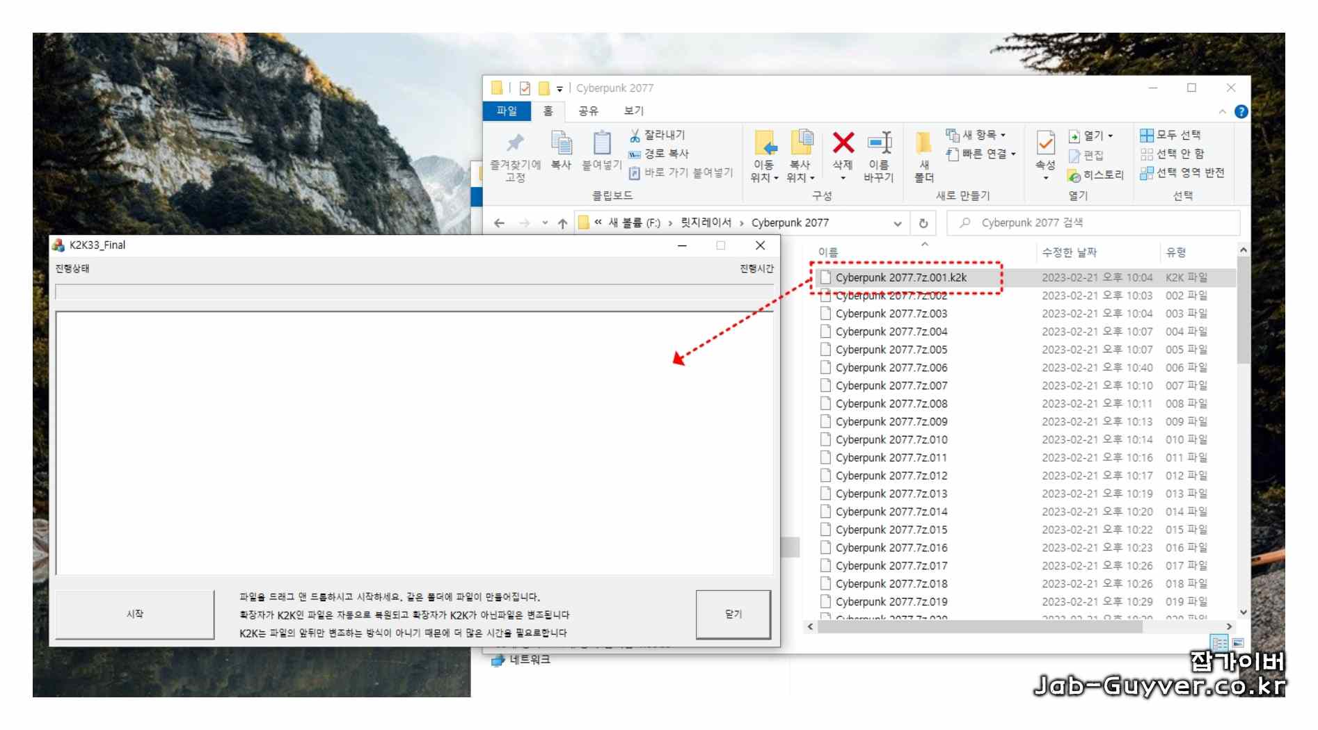 토렌트나 웹하드 등을 통해 유틸리티 및 게임등을 다운로드 받아보면 파일을 ZIP 등으로 압축하지 않고 복호화 프로그램을 통해 파일을 압축하는 경우가 있습니다. 이렇게 파일 보안을 위한 K2K33 및 J2J25 파일의 압축 해제 방법에 대해 알아보겠습니다.
