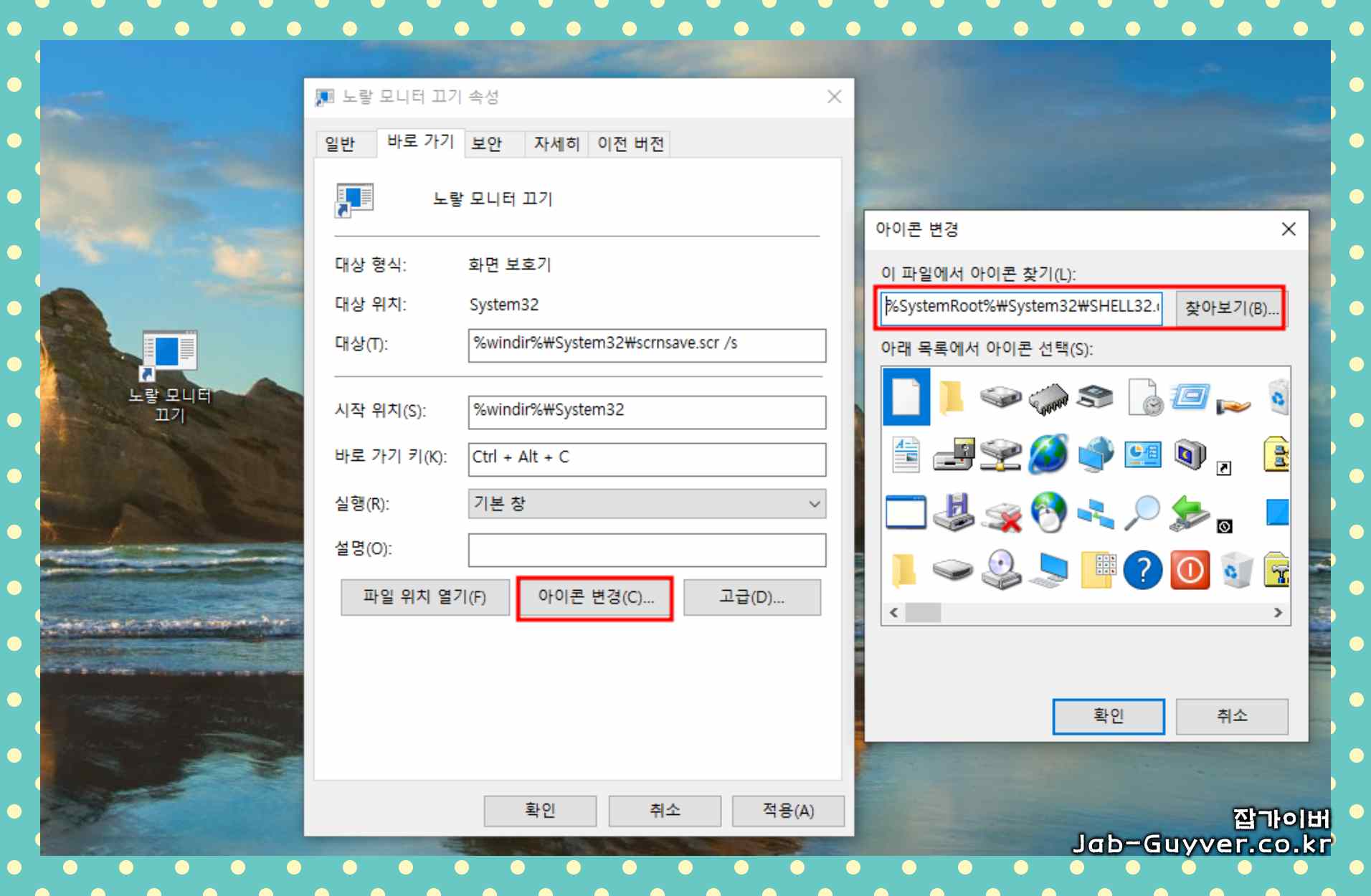 마지막으로, 바로가기 파일의 아이콘을 원하는 아이콘으로 변경할 수도 있습니다.