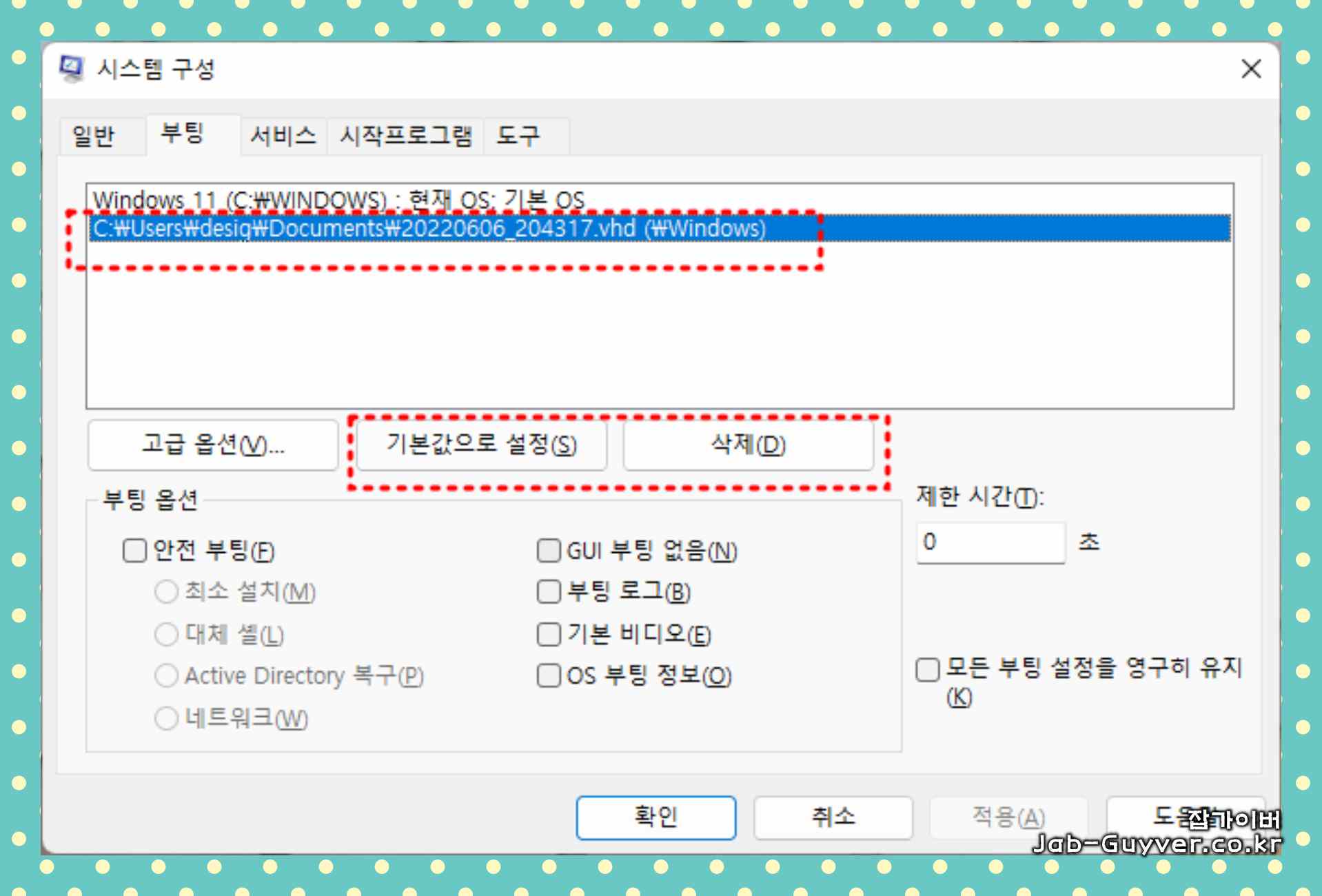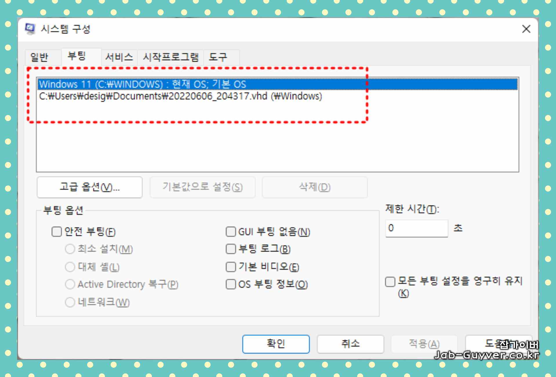 윈도우11 멀티부팅 순서 변경 및 기본OS 설정 삭제