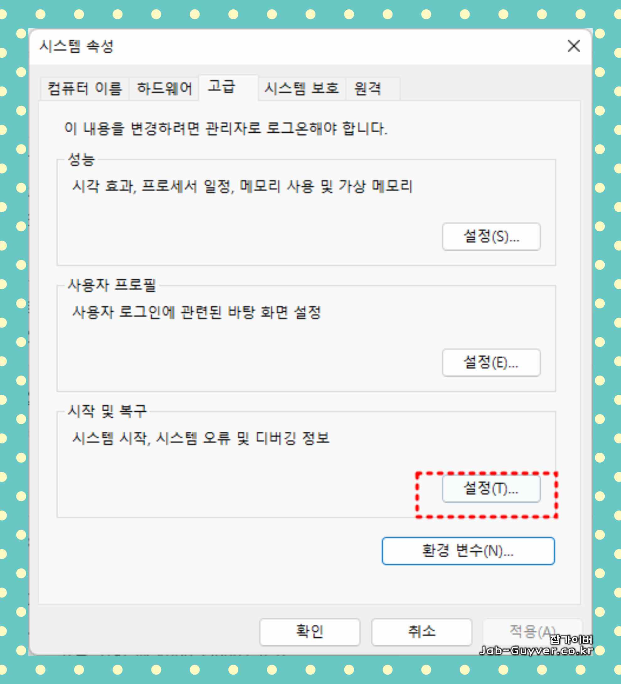 윈도우11 시작아이콘에서 시스템 -> 고급시스템 설정으로 들어갑니다.