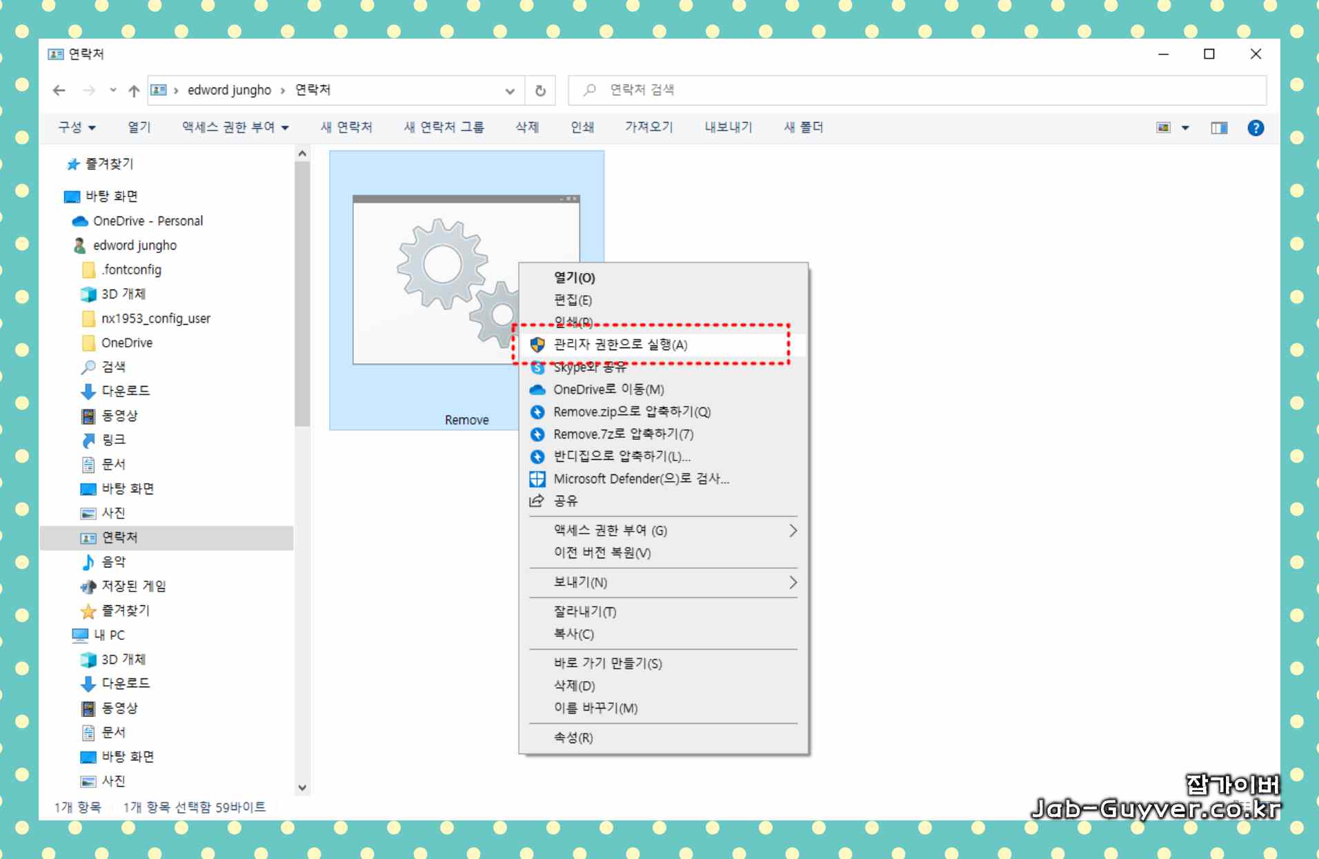 Remove.bat 파일을 마우스 오른쪽 버튼으로 클릭하고 "관리자 권한으로 실행"을 선택합니다.
