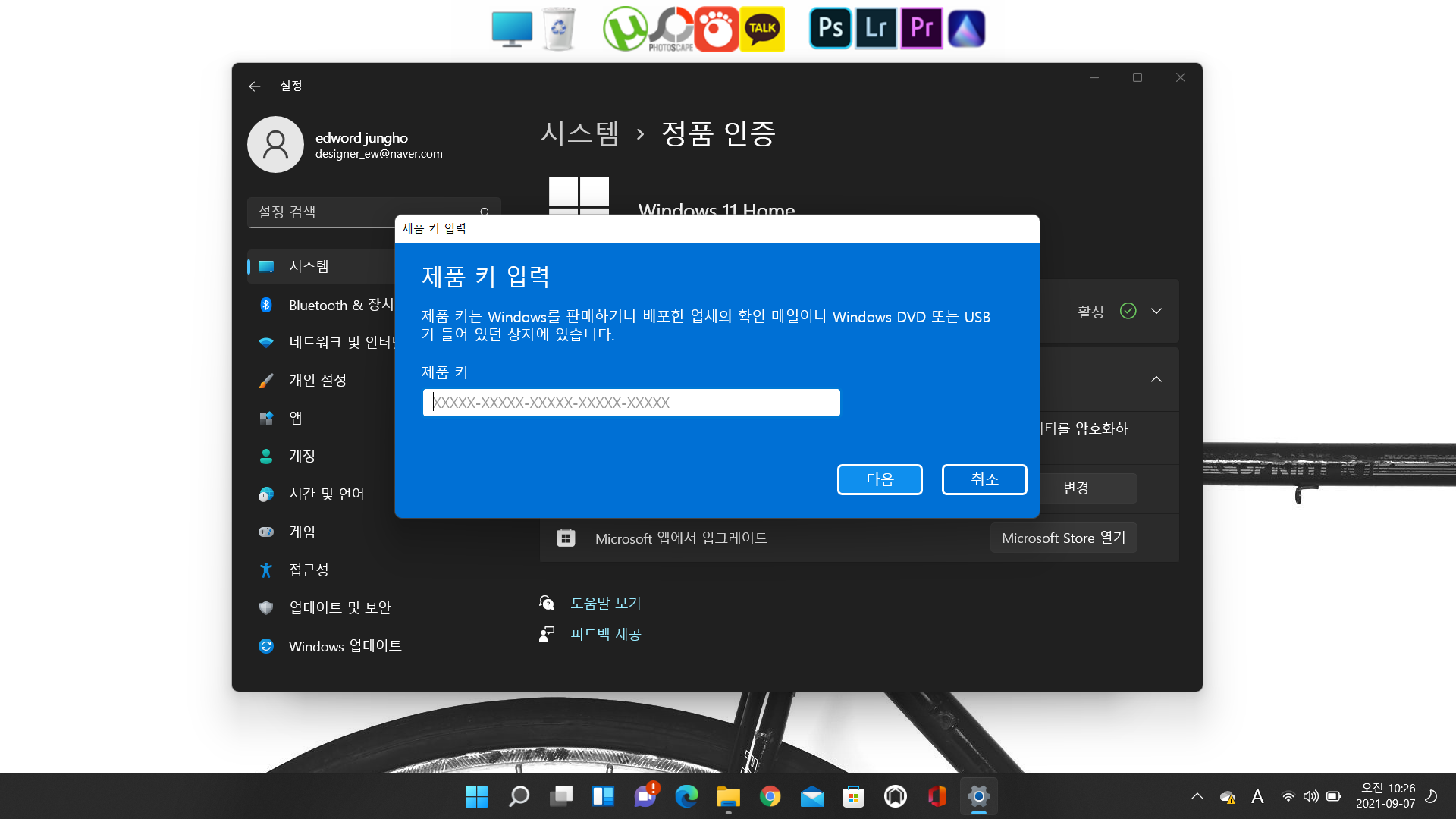 - 마이크로소프트 계정을 통해 인증을 완료하면 윈도우11 정품인증이 완료됩니다.