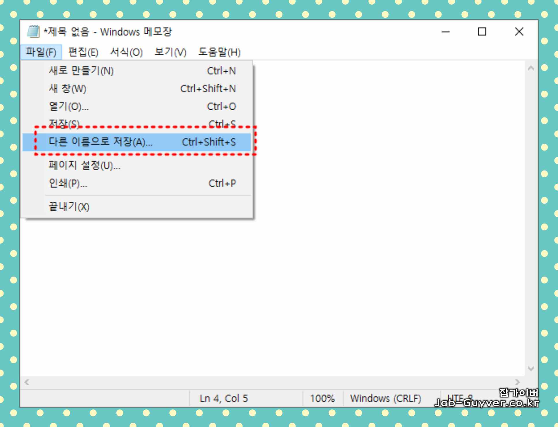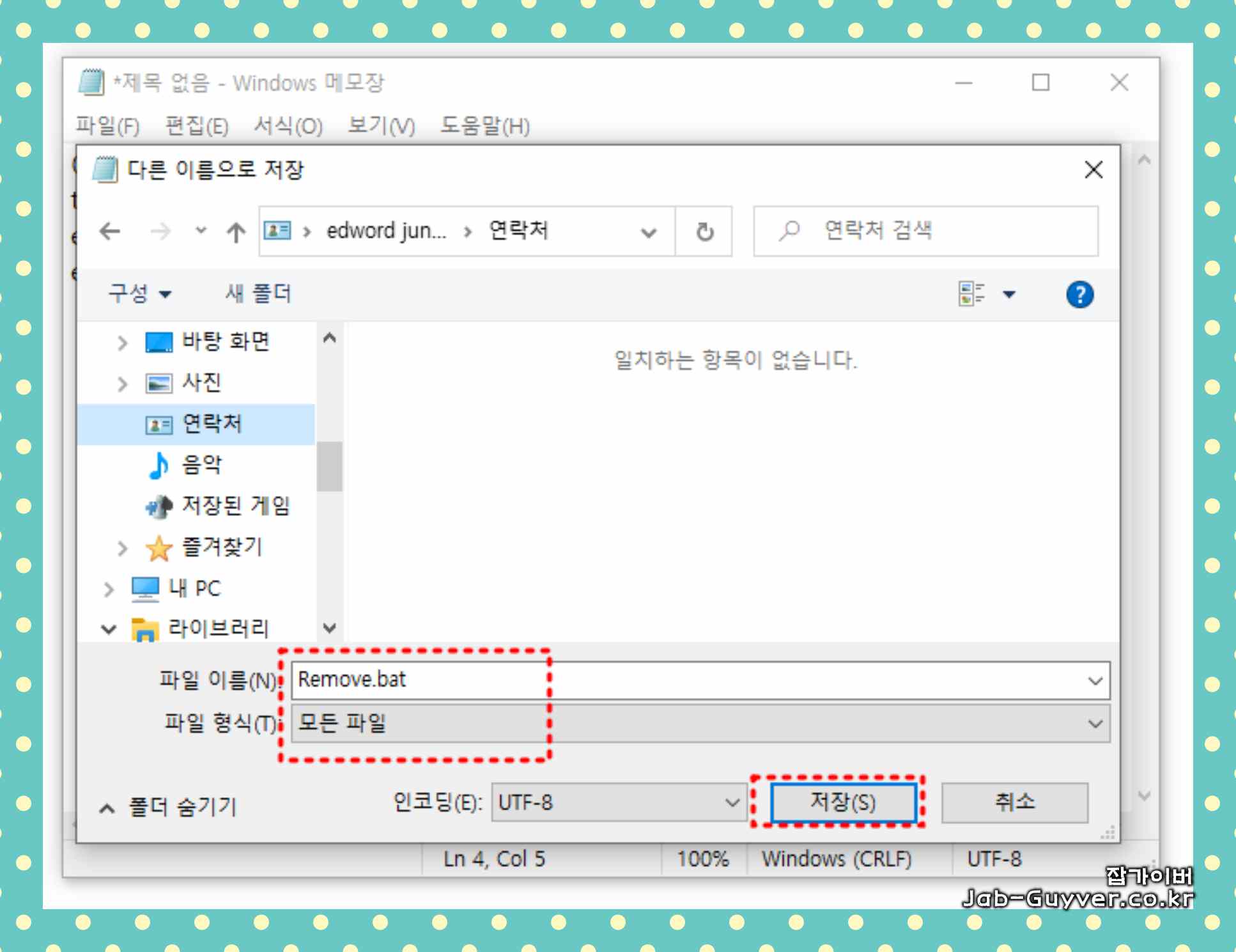 파일 메뉴로 이동하여 "저장"을 클릭하고 파일 이름을 "Remove.bat"로 지정합니다.