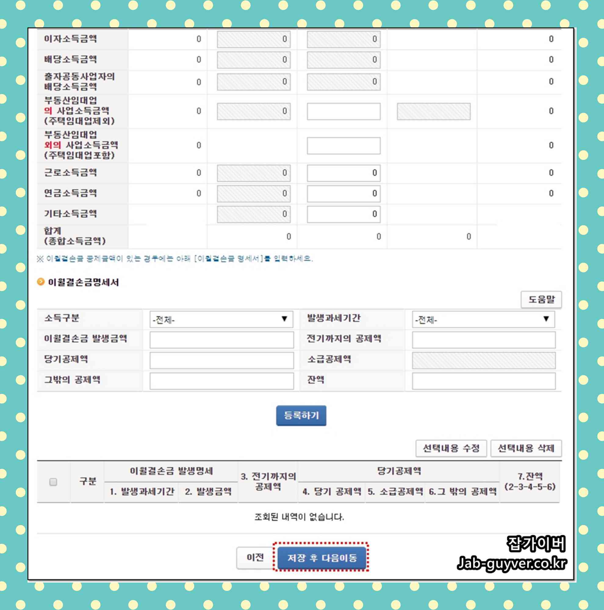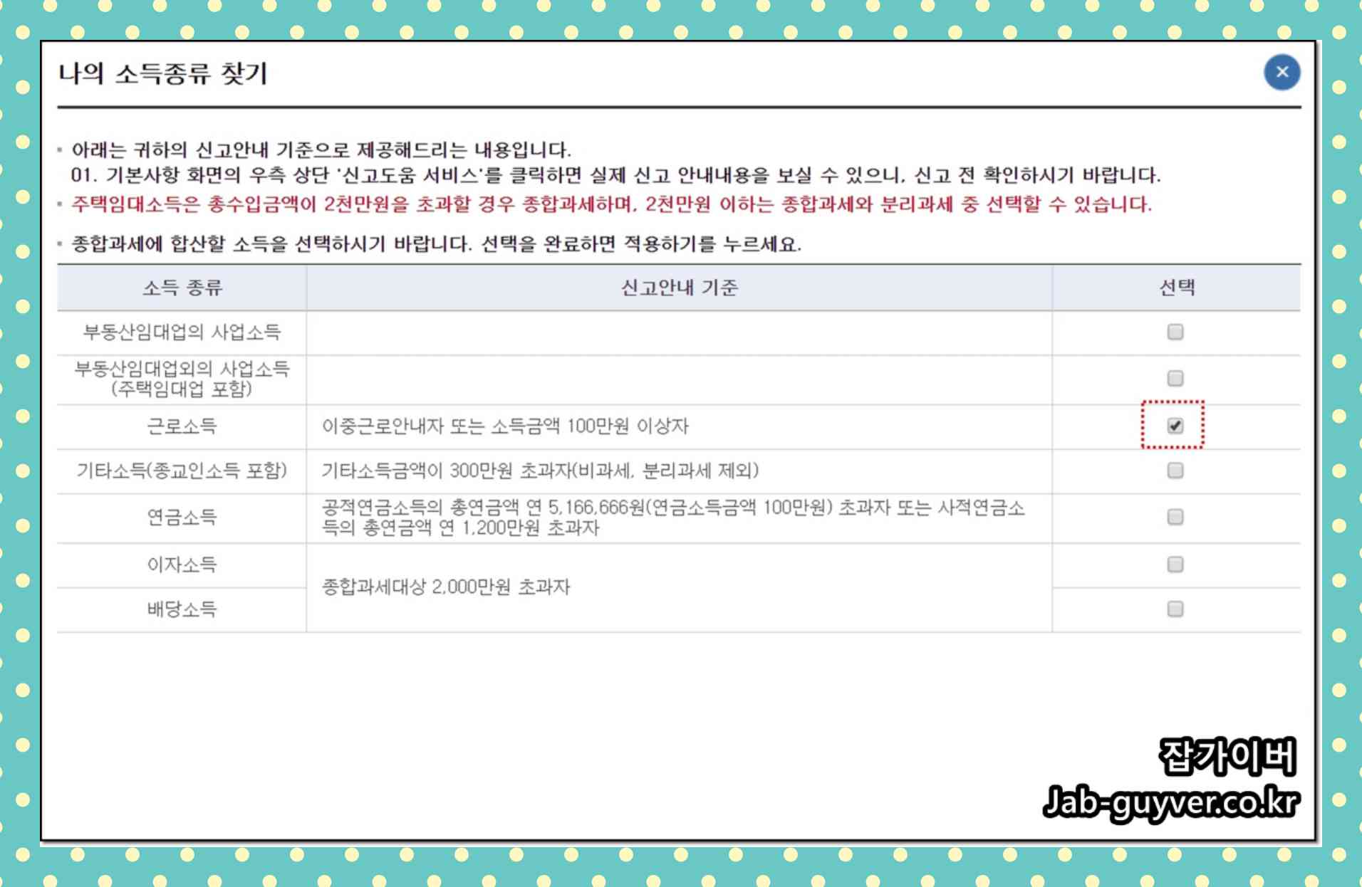 소득종류를 선택해야 합니다. 근로소득만 있는 경우에는 근로소득과 사업소득 또는 기타소득 중 한 가지를 선택하여 추가합니다.