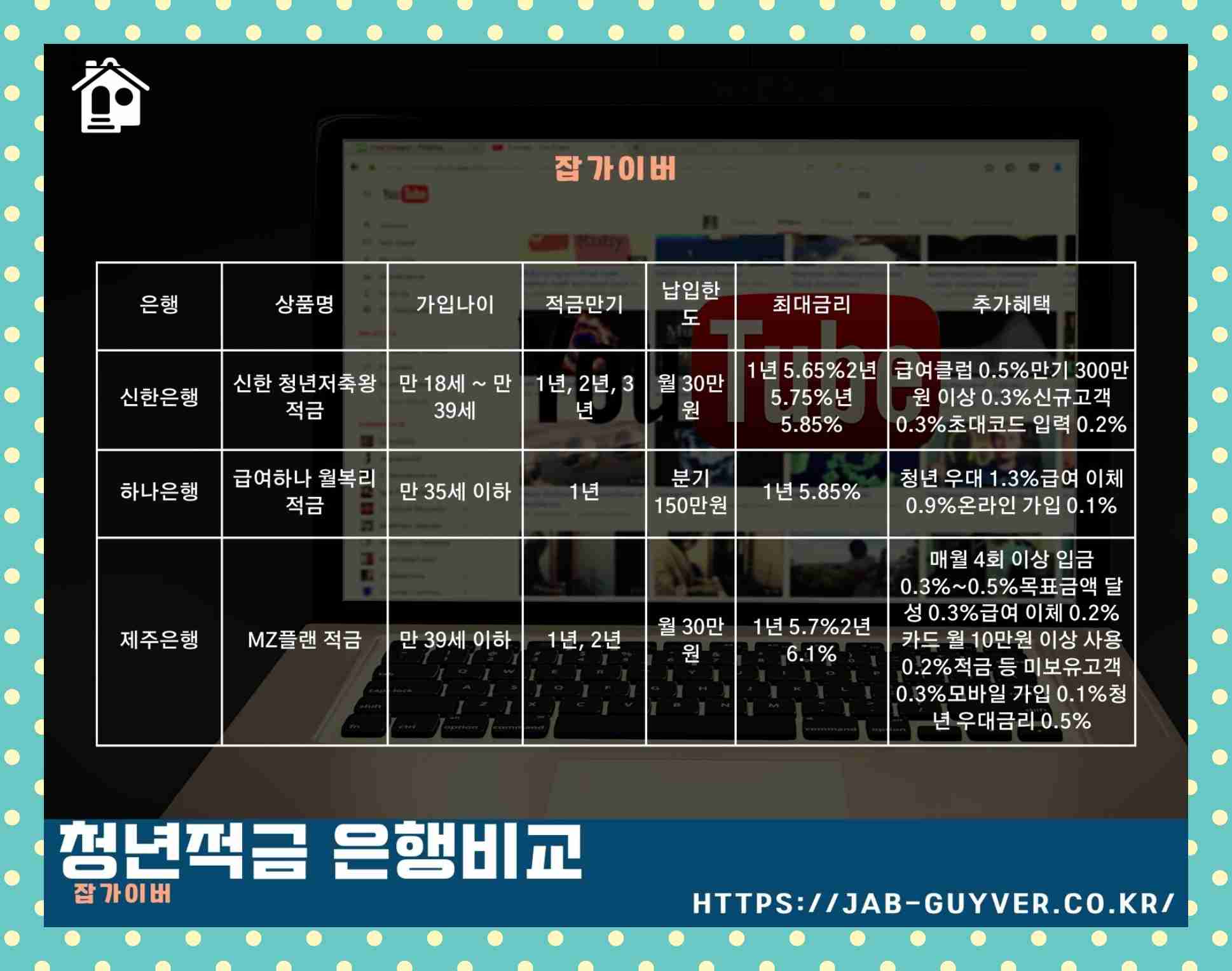 신한은행 하나은행, 제주은행 청년저축 적금비교 - 나이 및 소득조건