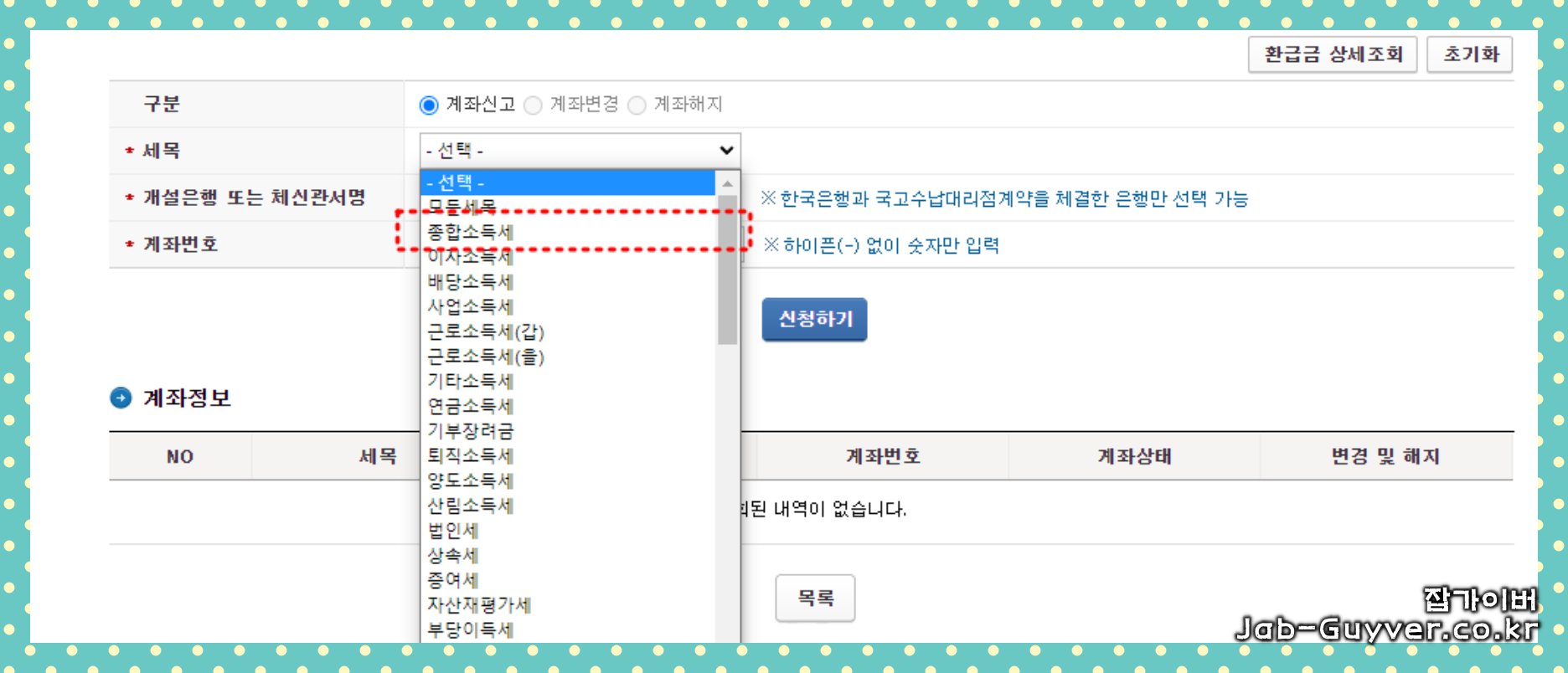 종소세 은행 및 계좌번호 변경