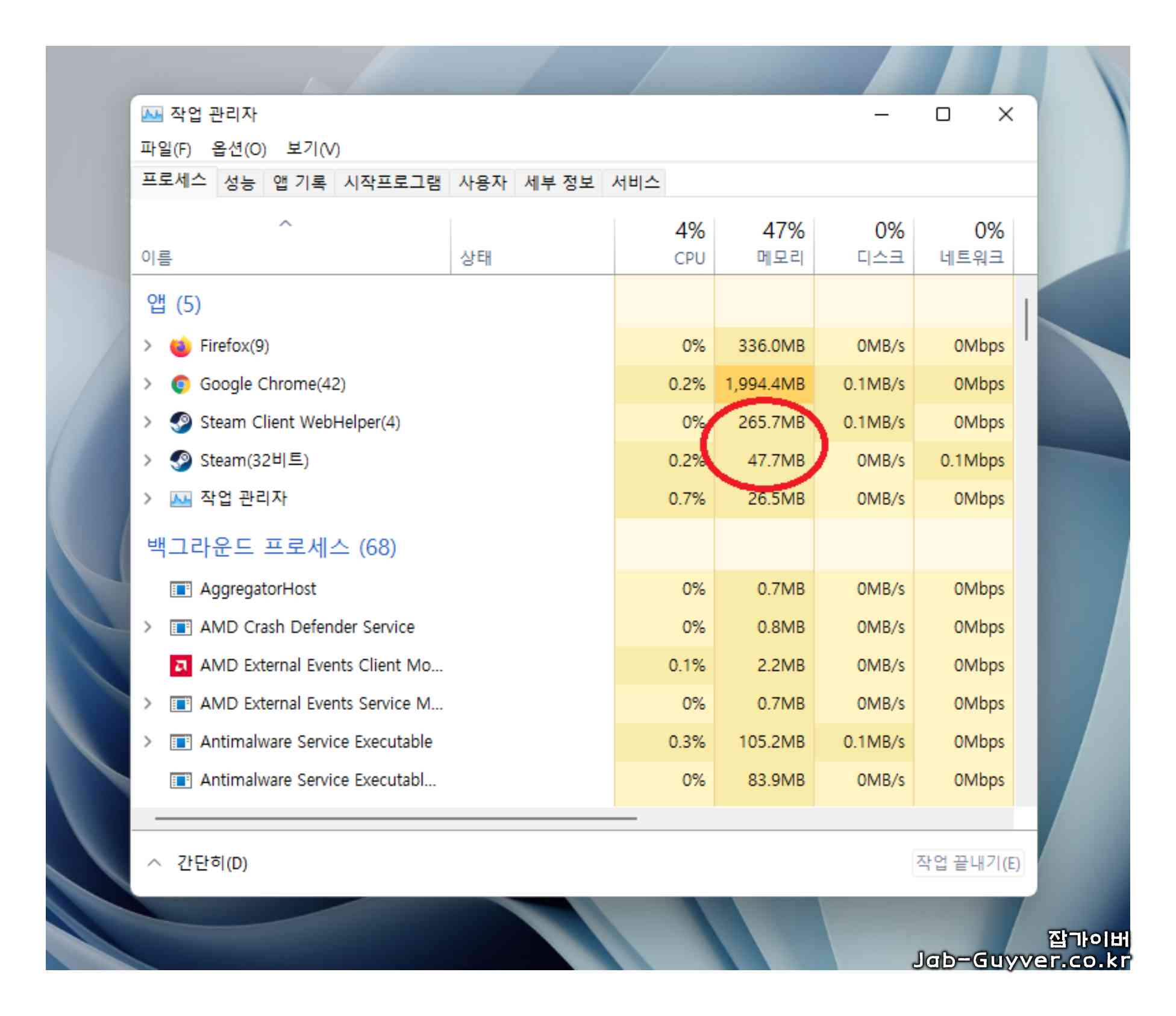 스팀게임 메모리 부족 CPU GPU 점유율 - Steam Client WebHelper
