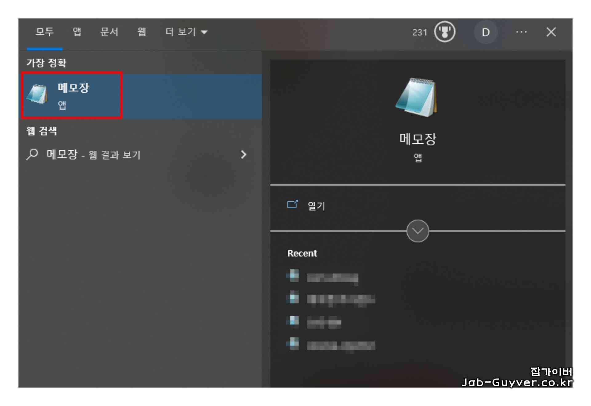 메모장을 실행 후 아래 명령어를 복사해서 배치파일로 저장합니다.