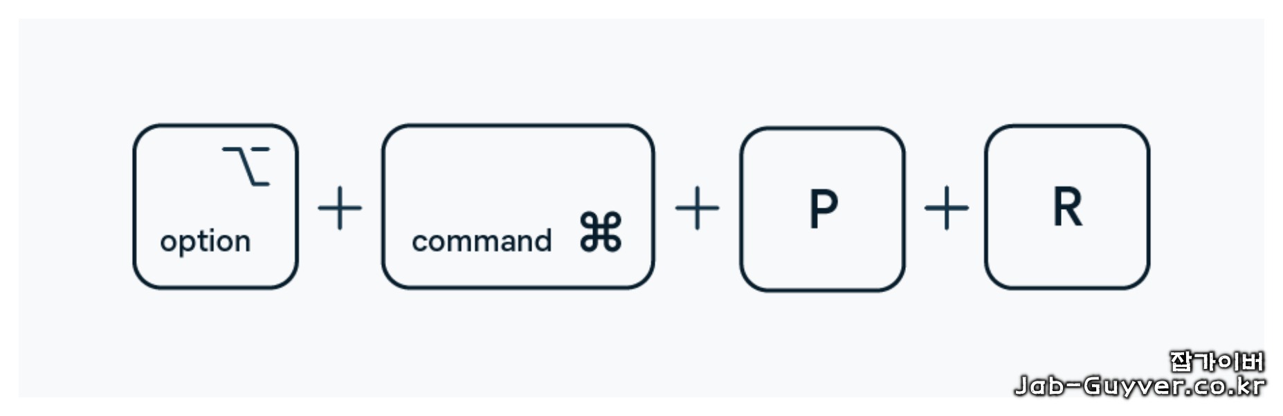 - 맥을 다시 시작하면서 커맨드(Command), 옵션(Option), P, R 키를 동시에 누르고 눌러진 상태로 유지합니다.