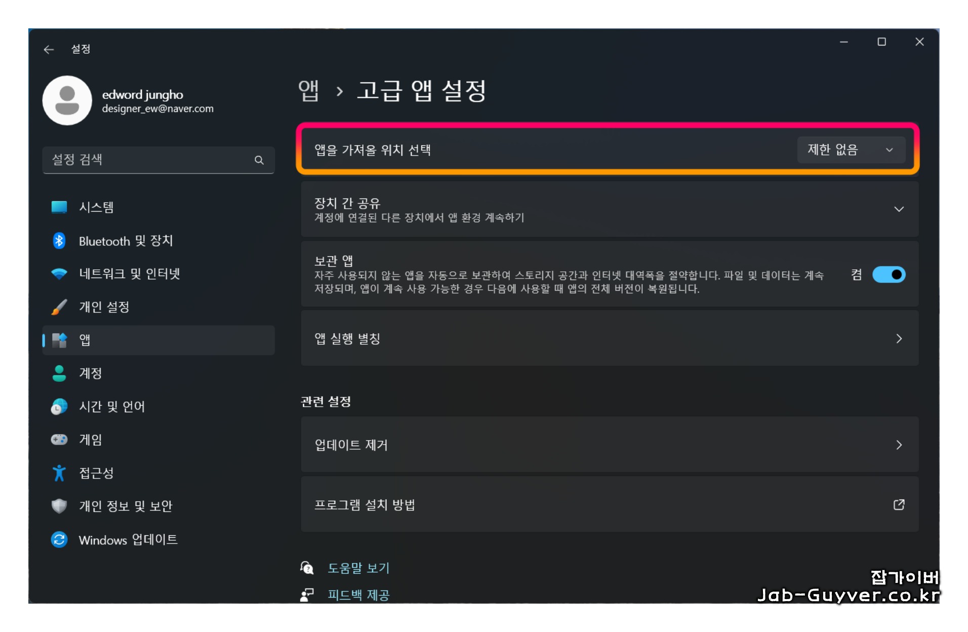 윈도우 앱설정으로 들어간 뒤 고급 앱 설정으로 들어갑니다.