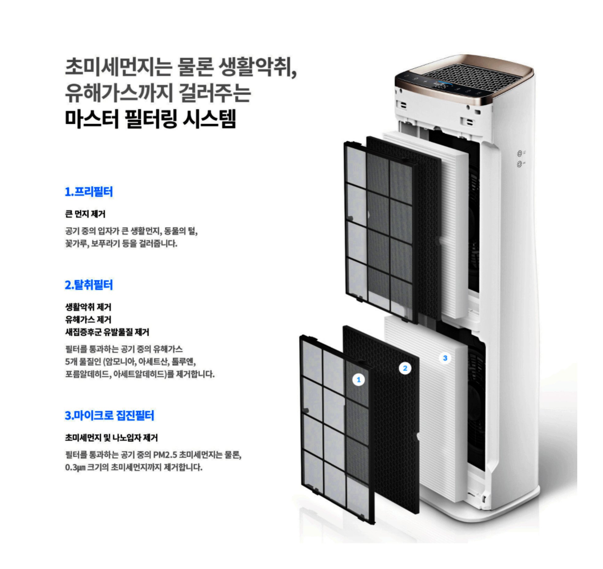필터를 깨끗하게 유지하고 정기적인 청소 및 교체를 수행하여 실내 환경의 질을 개선하고 공기청정기의 성능을 유지하느것이 중요합니다.