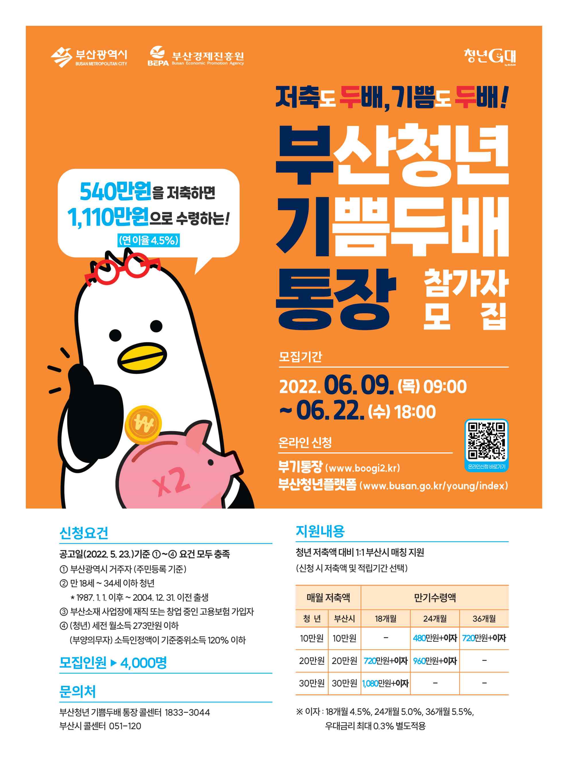 부산청년기쁨두배통장 신청자격 및 540만원 1,100만원 만들기
