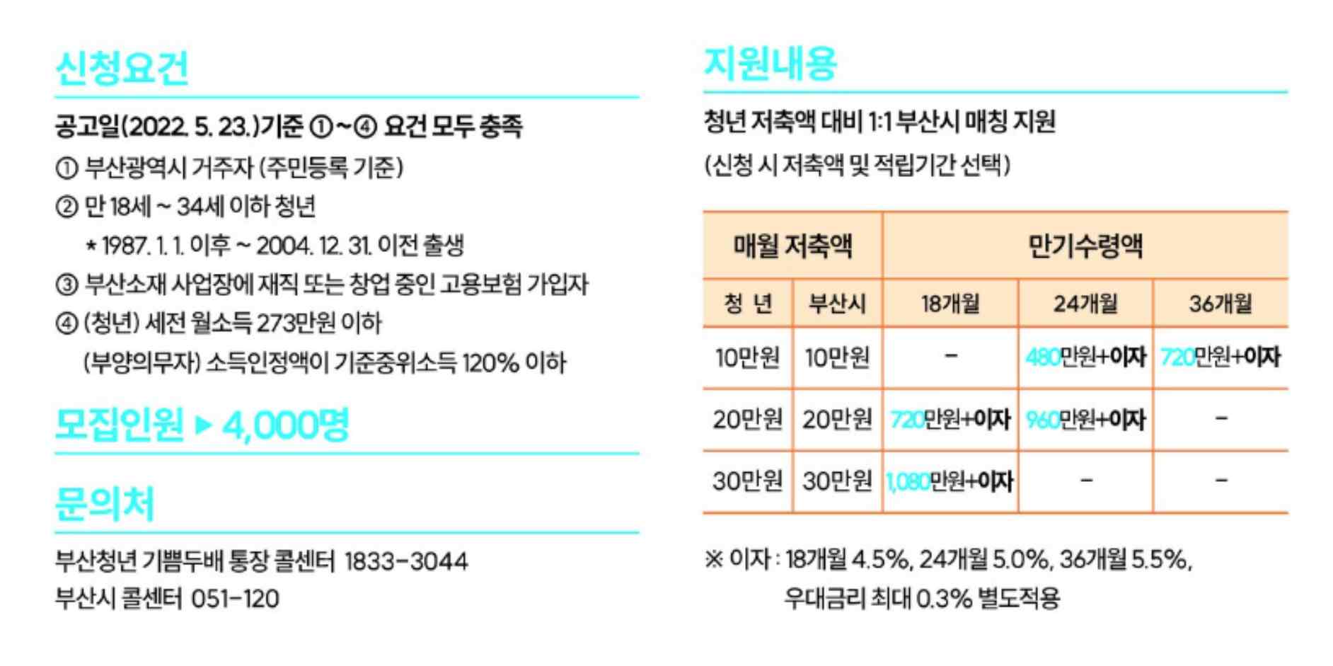 부산청년기쁨두배통장을 신청하려면 위의 지원 대상 조건을 모두 충족해야 합니다.