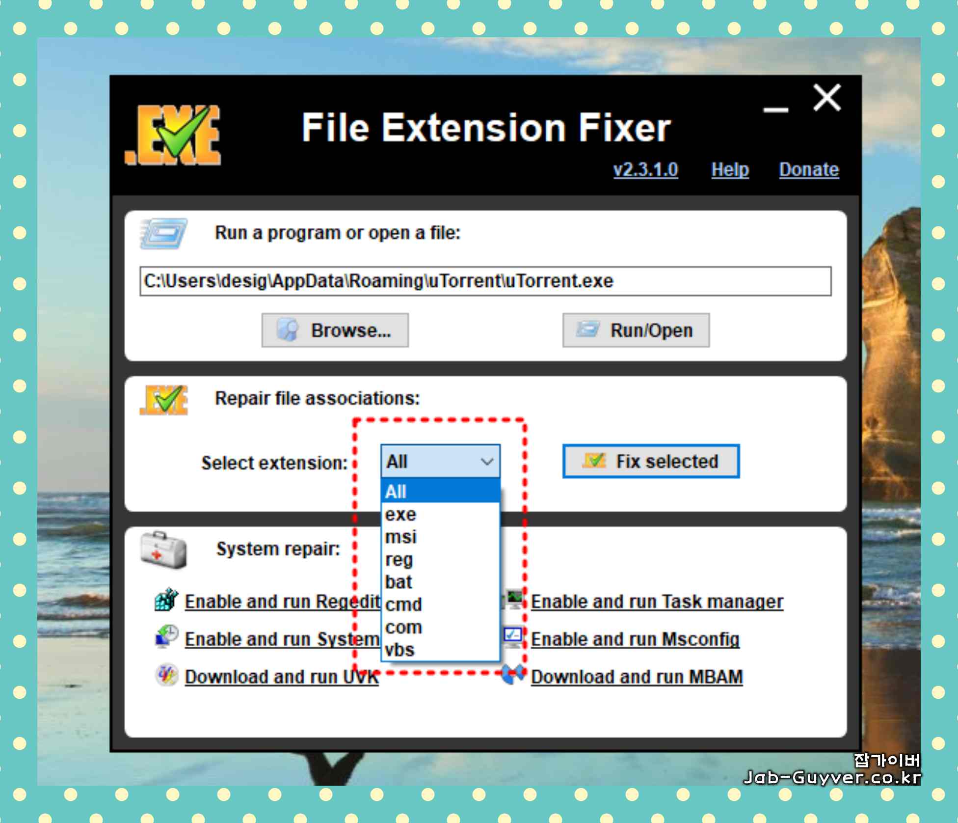 EXE, MSI, REG, BAT, CMD, COM, VBS 등등 실행안됨 File extension fixer