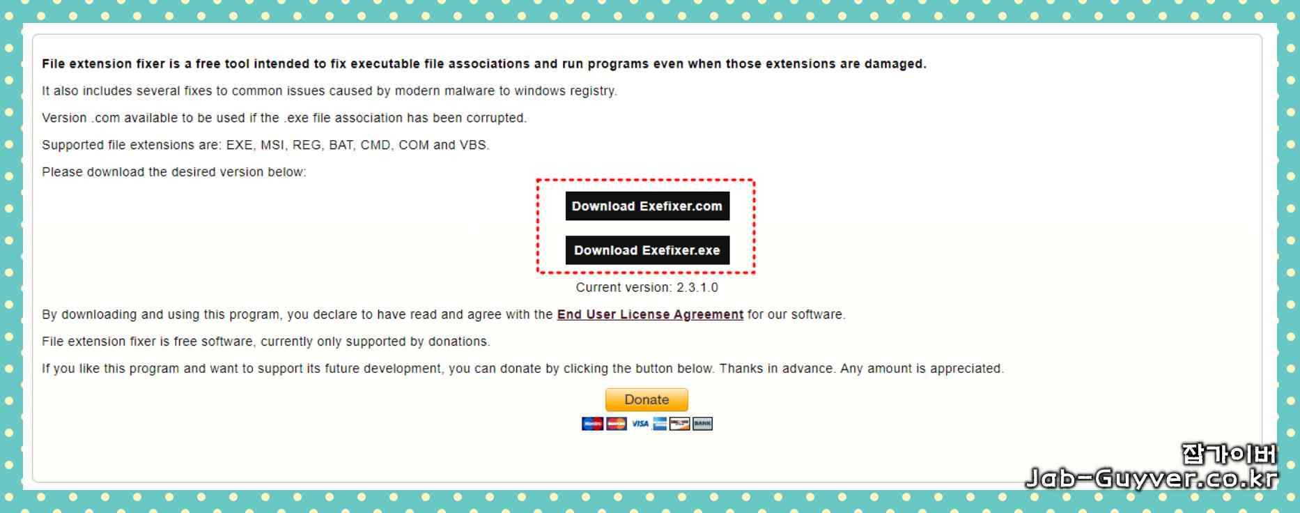 "Download Exefixer.com"을 클릭하여 파일을 다운로드한 후 실행하며 위 파일을 다운받아도 됩니다.