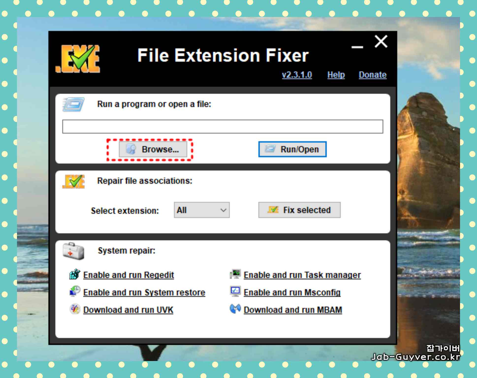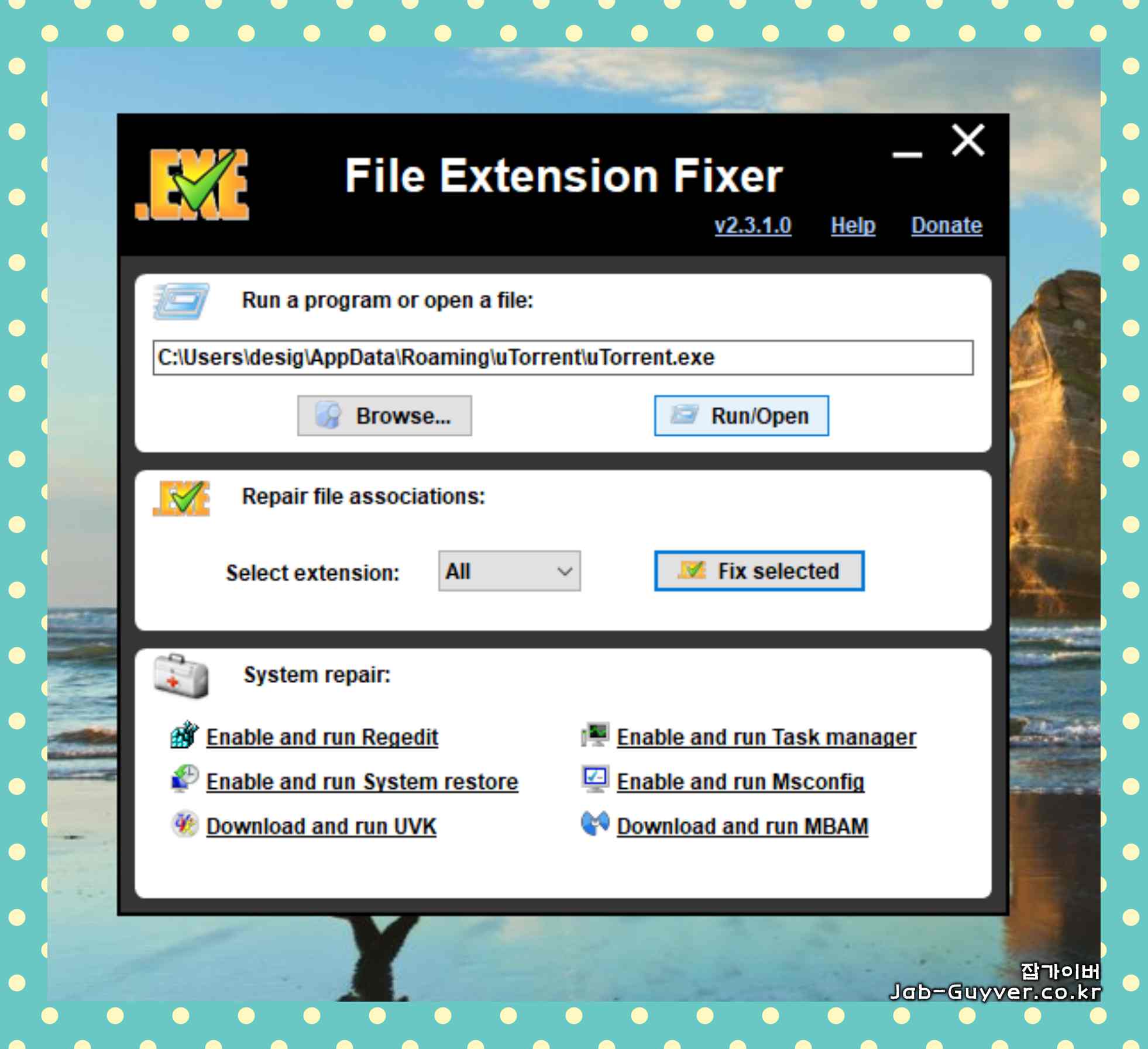 EXE, MSI, REG, BAT, CMD, COM, VBS 등등 실행안됨 File extension fixer