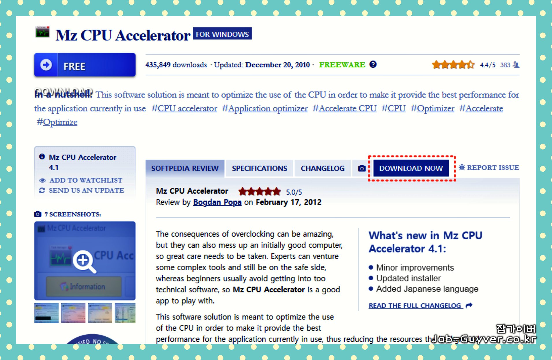 Mz CPU Accelerator 홈페이지에 접속 후 다운로드 받습니다.