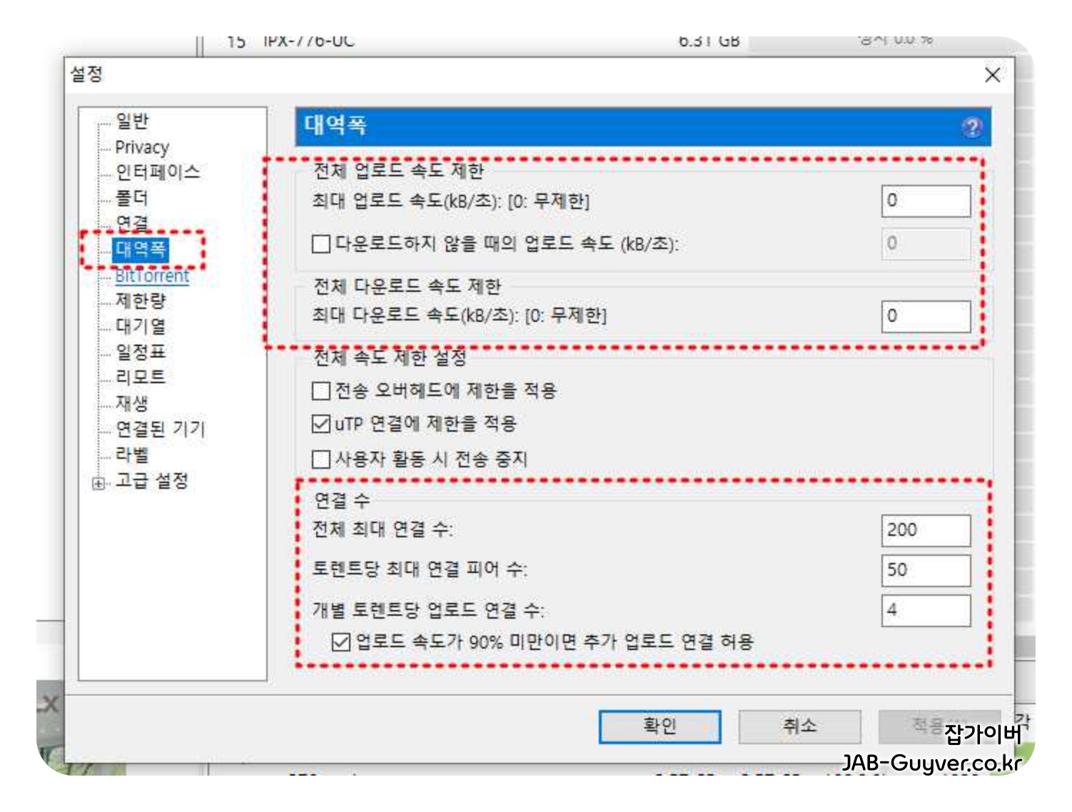 또한, 토렌트 클라이언트 설정에서 디스크 작업에 대한 제한을 설정할 수도 있습니다.
