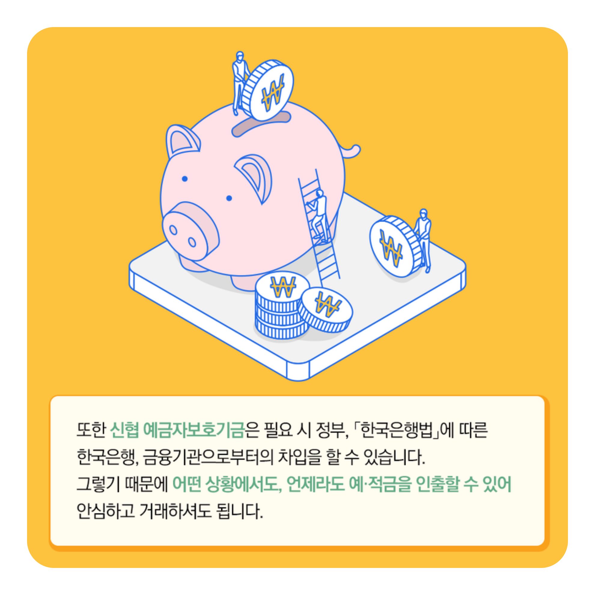 또한, 필요 시 정부, 한국은행법에 따른 한국은행, 금융기관으로부터의 차입도 가능하며 이를 통해 신협은 어떠한 상황에서도 고객 예금을 보호하고 유동성을 확보하여 안전한 운영을 지속할 수 있습니다.