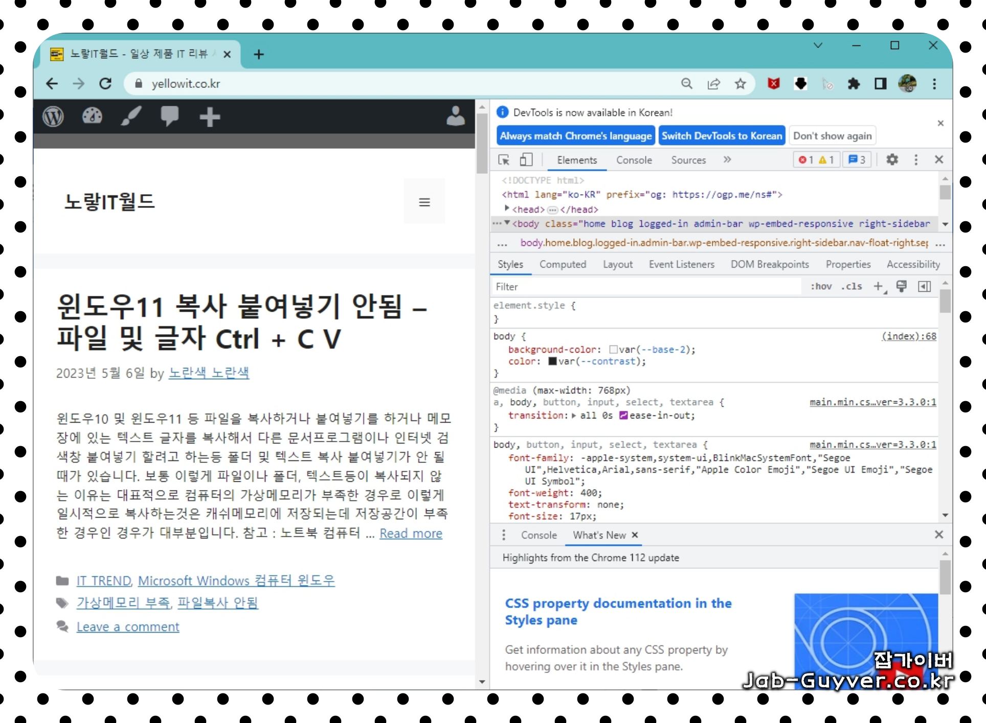 인터넷 구글크롬 개발자도구 실행 단축키 : Ctrl + Shift + I