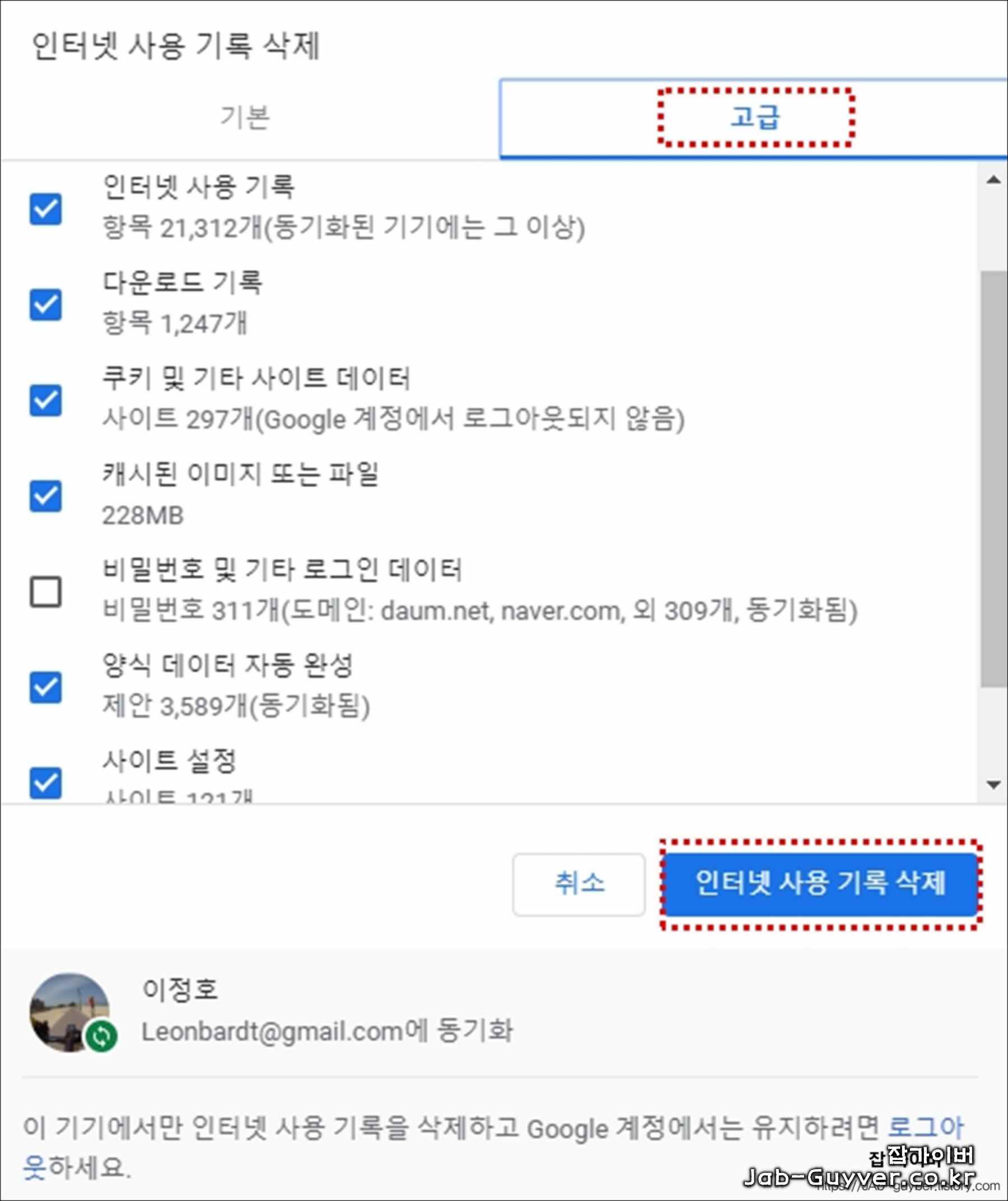 인터넷 사용기록 삭제 - 방문기록, 쿠키 캐시