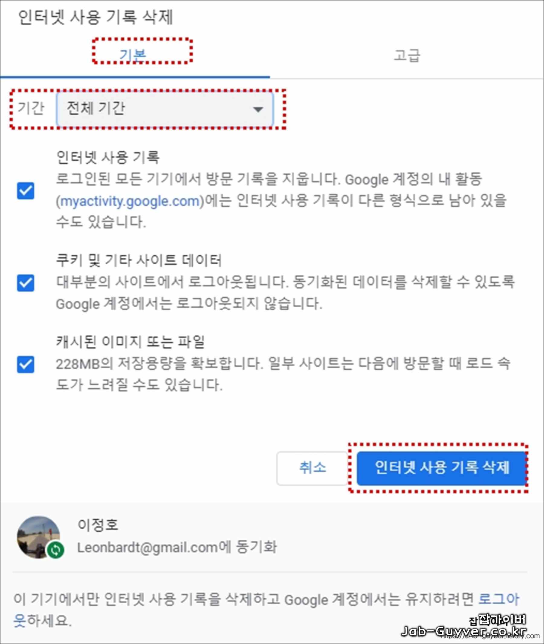 쿠키 및 캐시 지우기