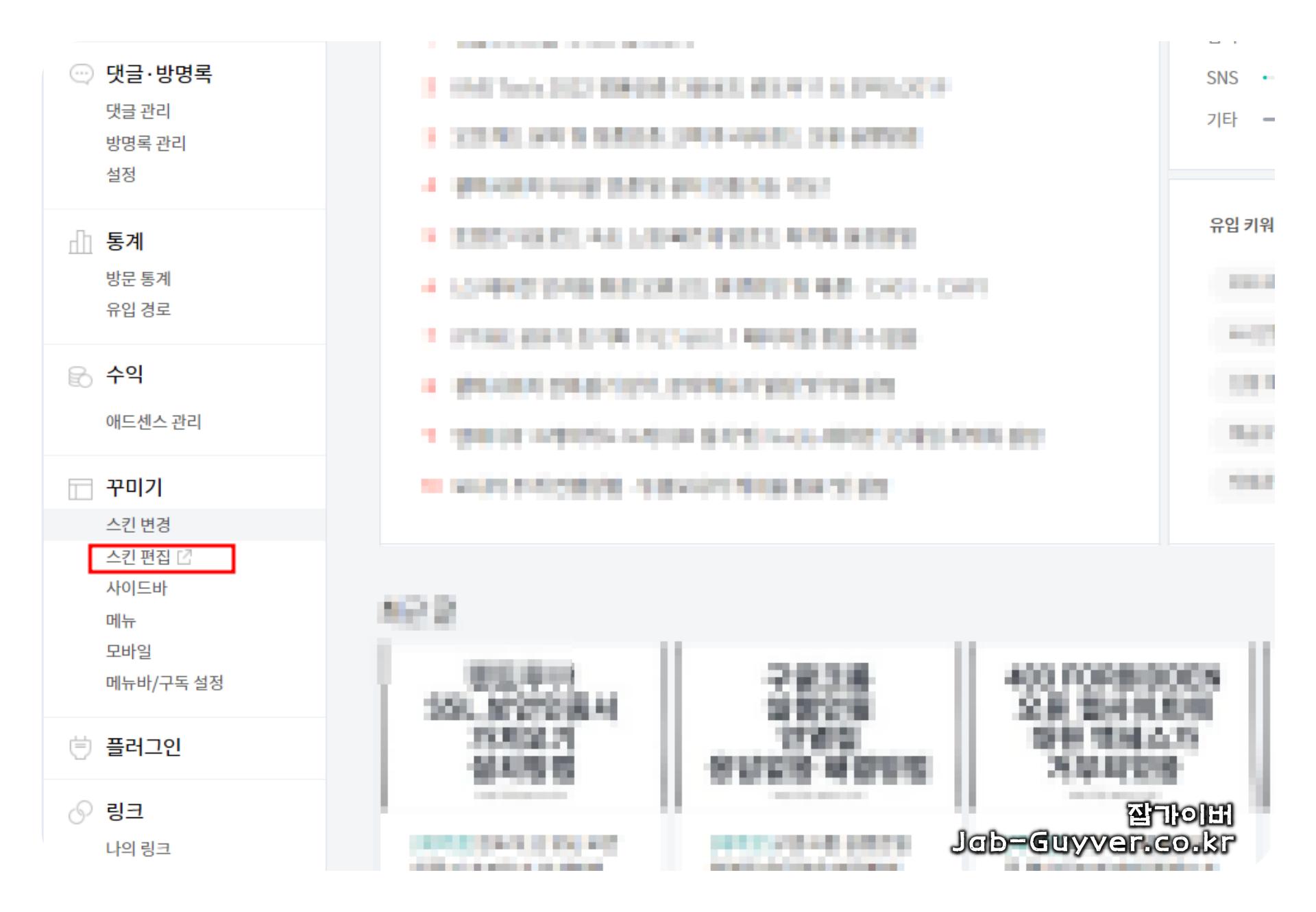 본문의 글씨 크기를 변경하기 위해 티스토리 관리자 페이지로 이동합니다.