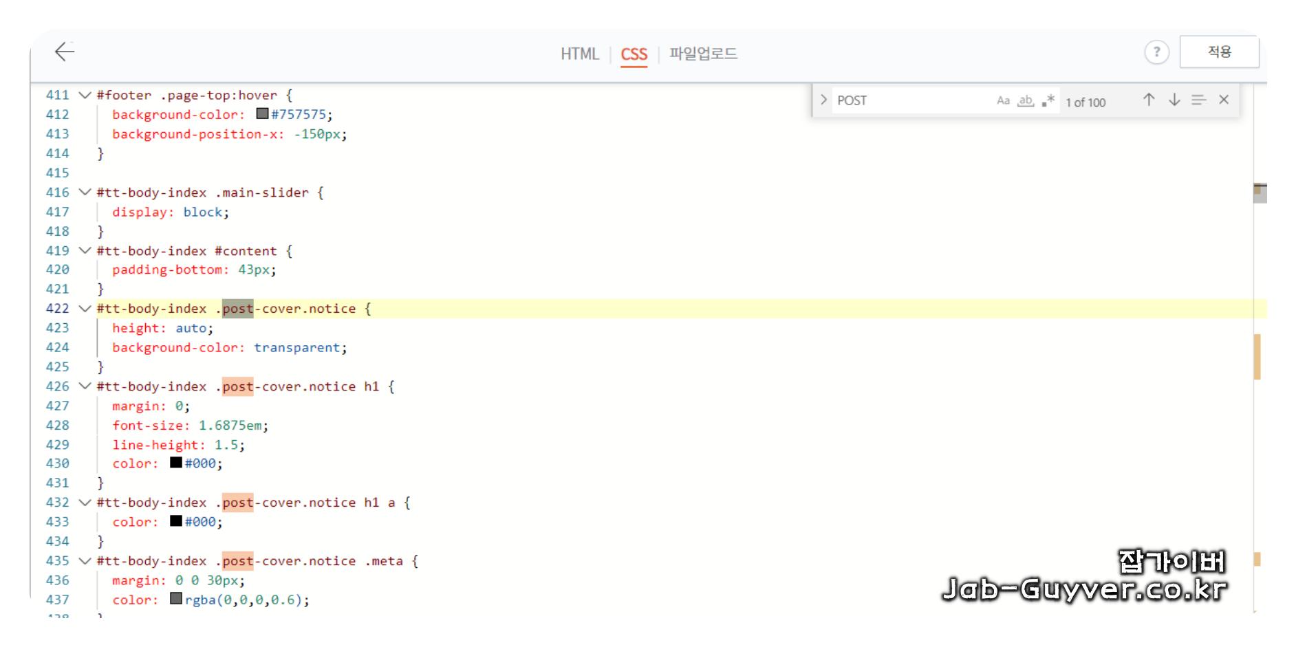 Ctrl + F를 눌러 "Post"라고 검색하여 본문에 대한 스타일 부분을 찾습니다.