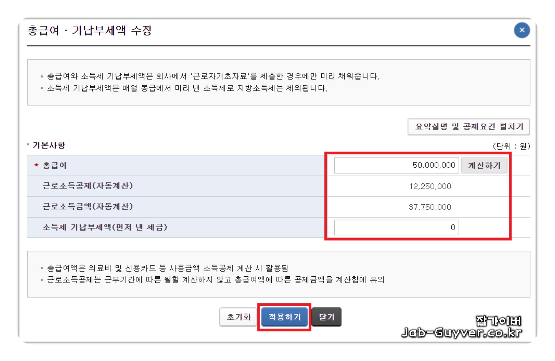 | 총급여 | 기본 세액 계산의 출발점이라 숫자가 틀리면 전체 결과가 달라집니다. |