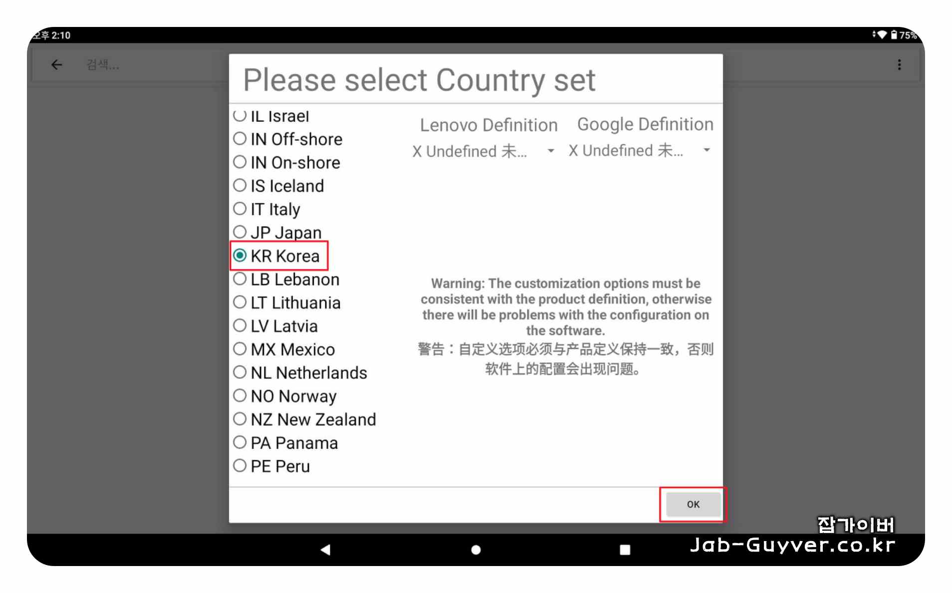 레노버 P11 국가코드 변경 방법 - 한국 설정 글로벌롬 설치