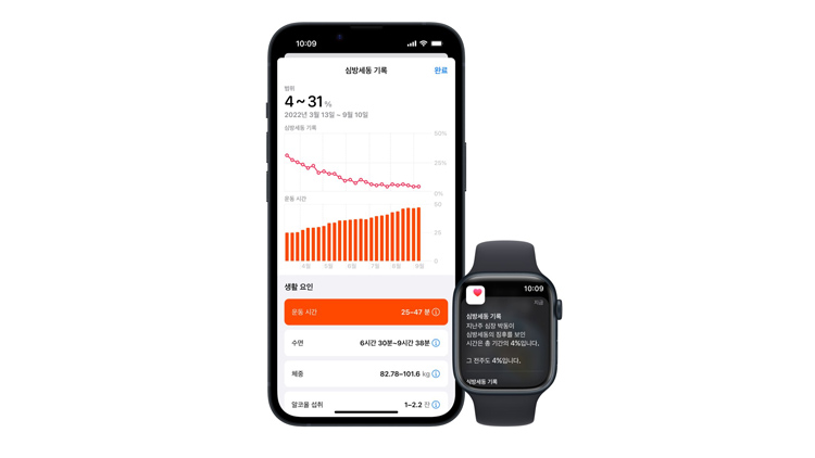 오늘부터 활성화된 애플워치의 심방세동 기록 기능은 심방세동의 징후를 장기적으로 추적하여 정보를 제공합니다. 심방세동 진단을 받은 경우, 아이폰을 최신 버전의 iOS로, 애플워치를 최신 버전의 워치OS로 업데이트한 후 심박수와 손목 인식 기능을 활성화해야 하며 주 5일 동안 하루 12시간 이상 애플워치를 착용하여 일관된 추정치를 얻을 수 있습니다.