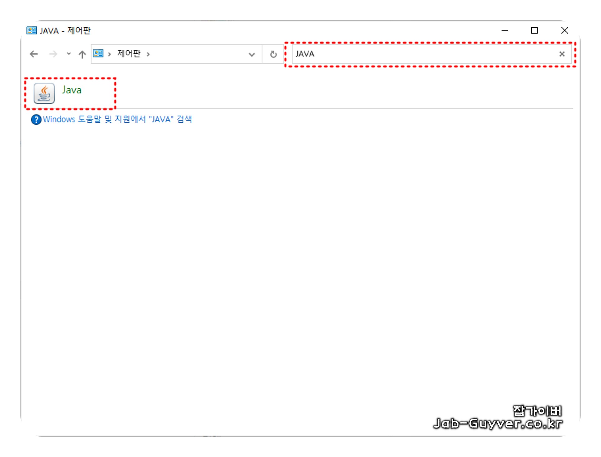 제어판에서 "프로그램" 아이콘을 클릭 후 Java 아이콘을 클릭하여 "Java 제어판"으로 들어갑니다.