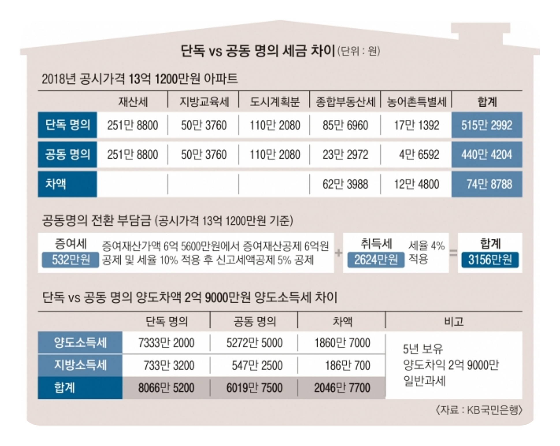 부동산 재산세 공동명의 단독명의 세금절세 - 장점 및 단점