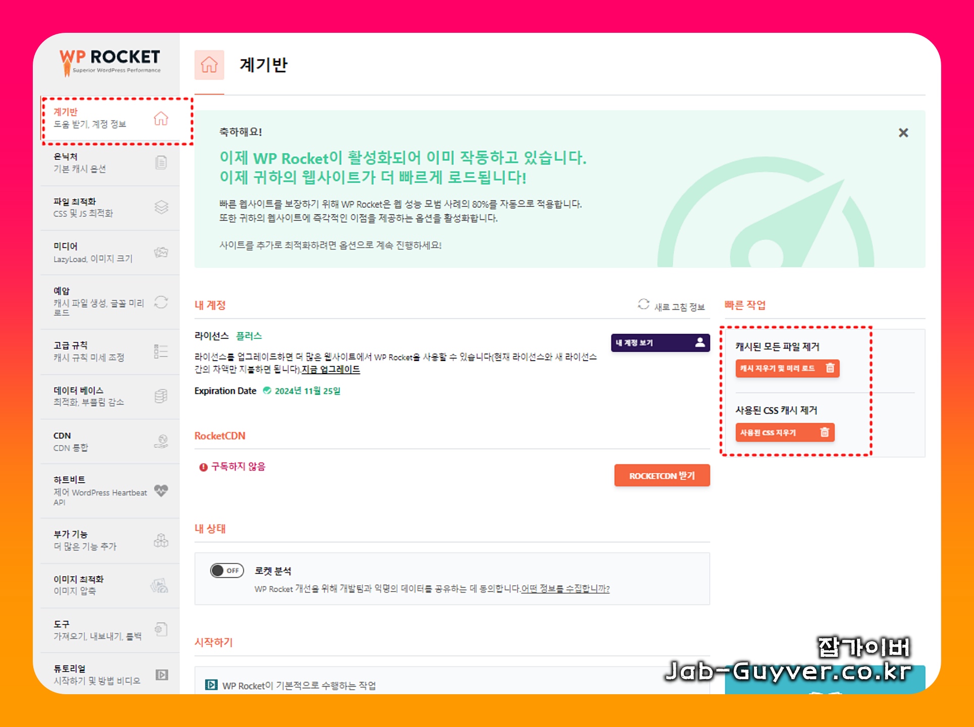 워드프레스 WP-ROCKET 플러그인 설정방법은 아래 기존에 작성한 글을 참고하세요