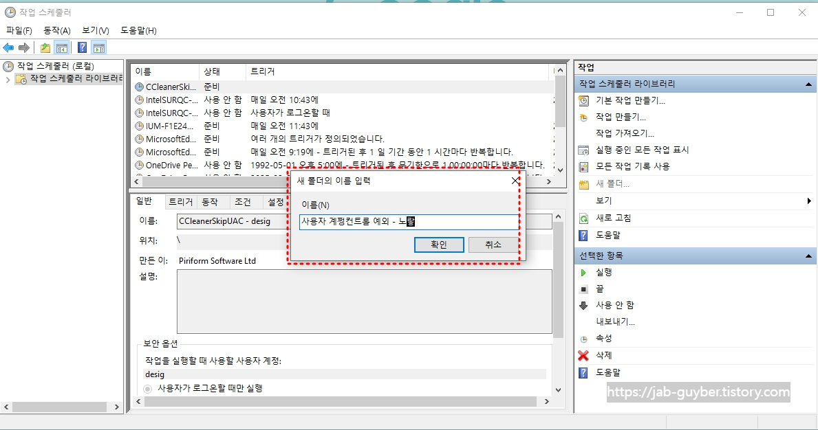 작업 스케줄러를 사용한 UAC 예외 설정 방법