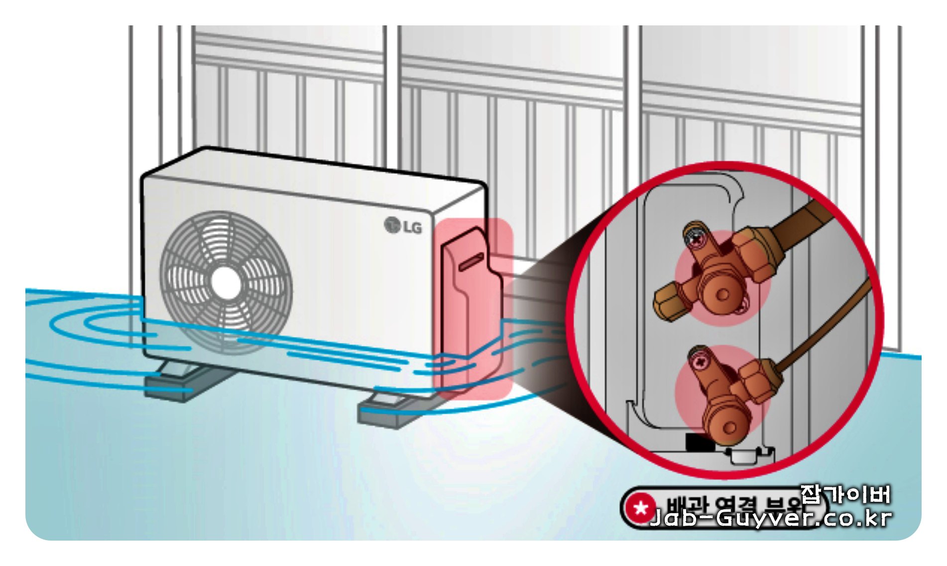 냉매 가스 누수는 실외기와 연결된 파이프나 유관 부분에서 냉매 가스가 새어나가는 상태를 말합니다. 이로 인해 냉매의 양이 줄어들면서 에어컨의 냉방 효율이 낮아지고 시원한 바람이 나오지 않을 수 있습니다.