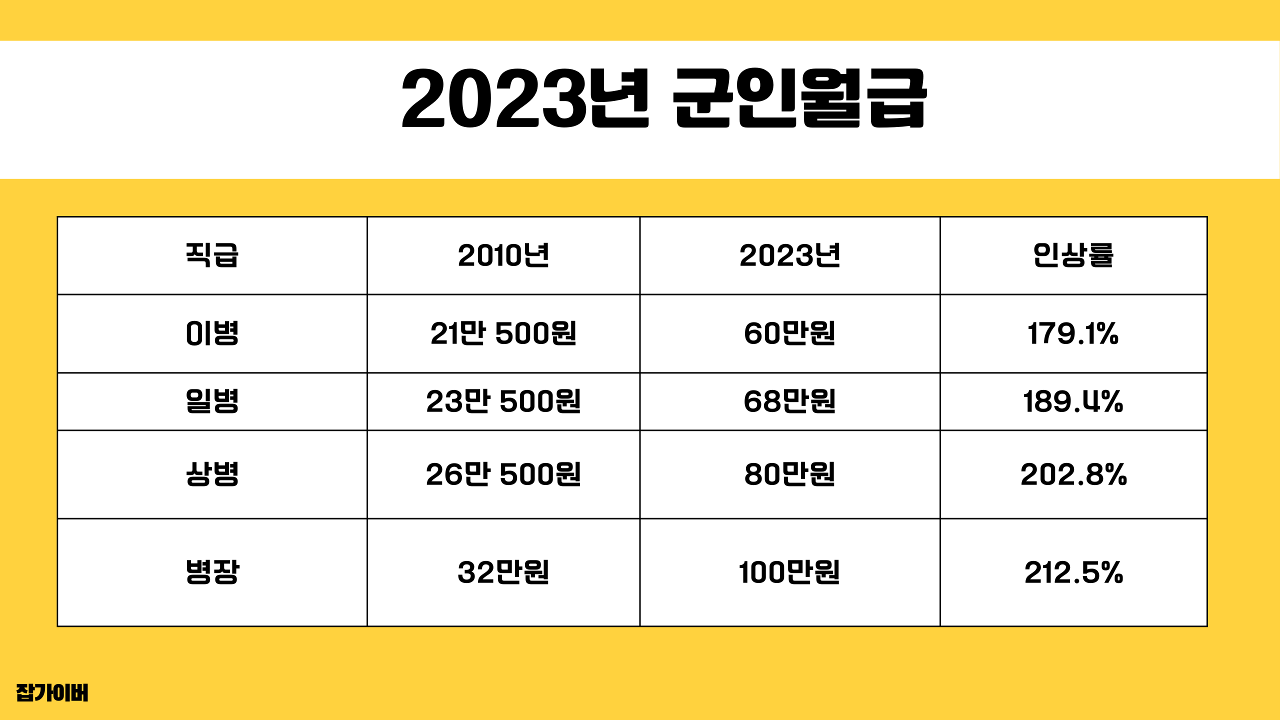 2023년 군인 병장 이등병 일병 상병 월급 정리