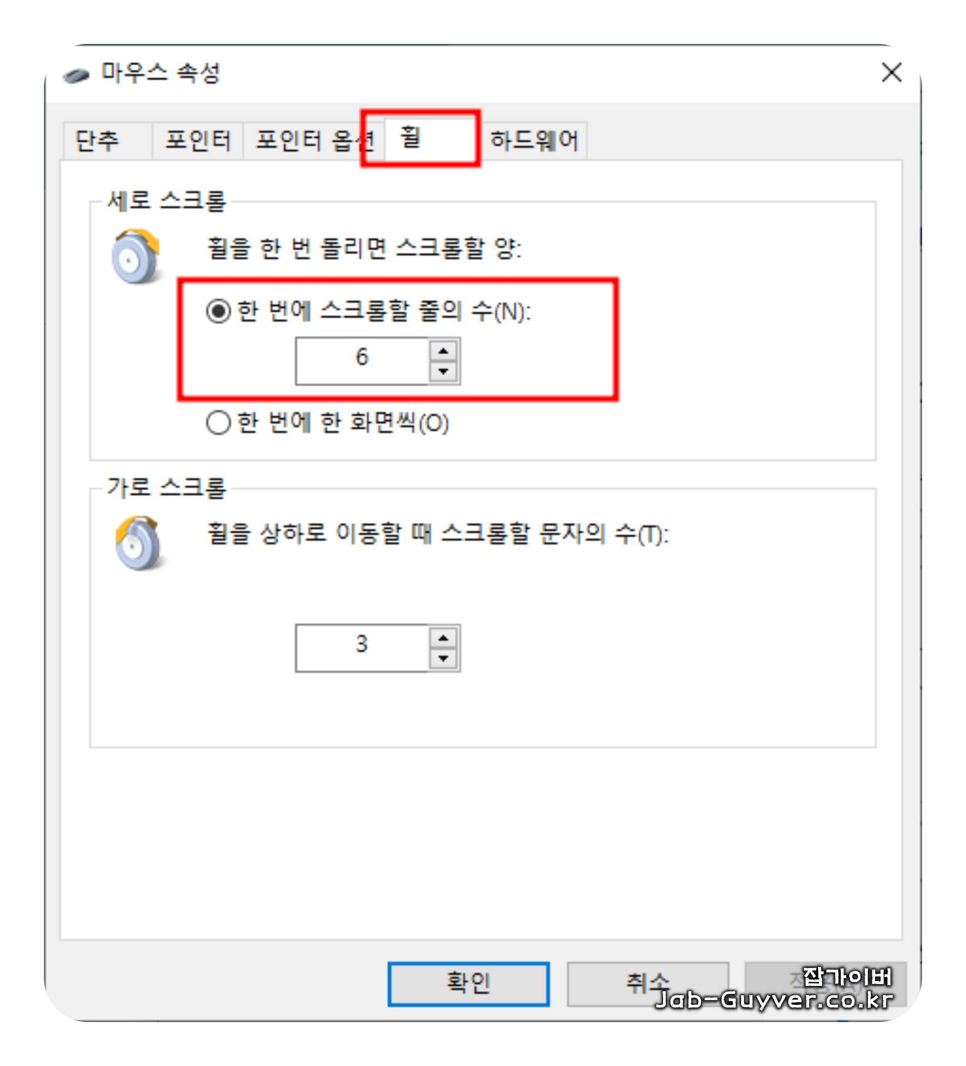 - 제어판 > 마우스 > "스크롤 속도" 조정.