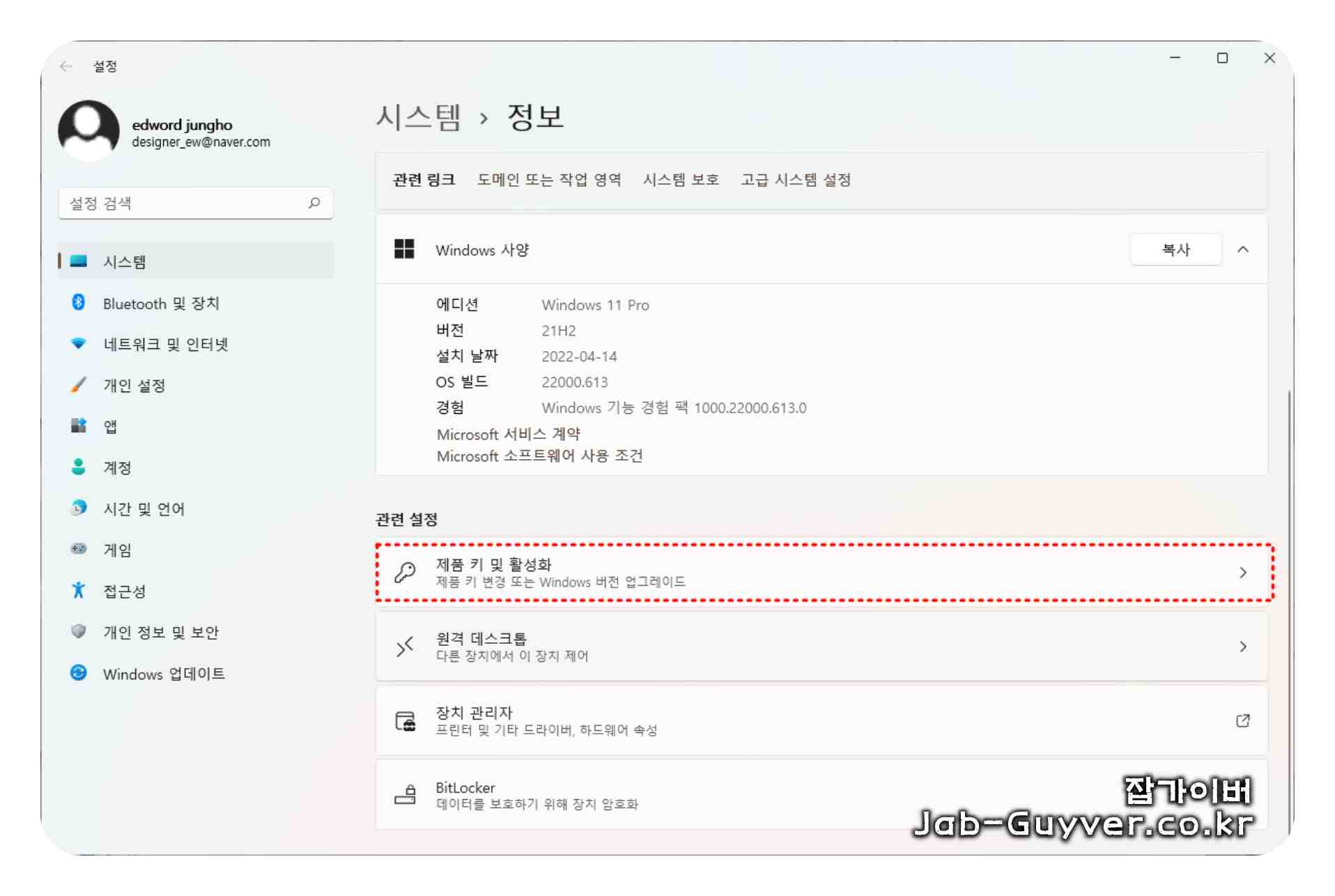 - 설치가 완료되면 윈도우11이 정품으로 인증됩니다.