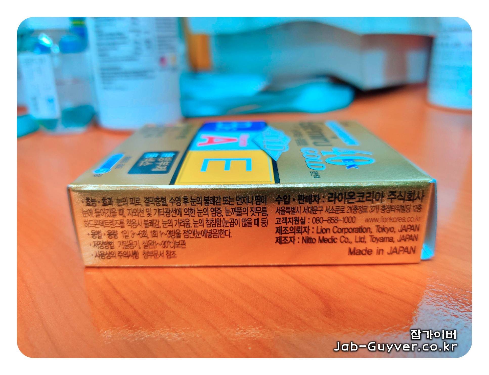 유통기한도 1년 11개월이나 남아있어서 편안하게 사용할 수 있었고, 일제 시대의 제품인 것을 포장지를 통해 알게 되었습니다. 아이미루 골드 40EX라는 제품은 처음 사용해봤는데 약국에서 가장 추천하는 제품이라고 해서 내돈내산으로 구입 후 후기를 남겨봅니다.
