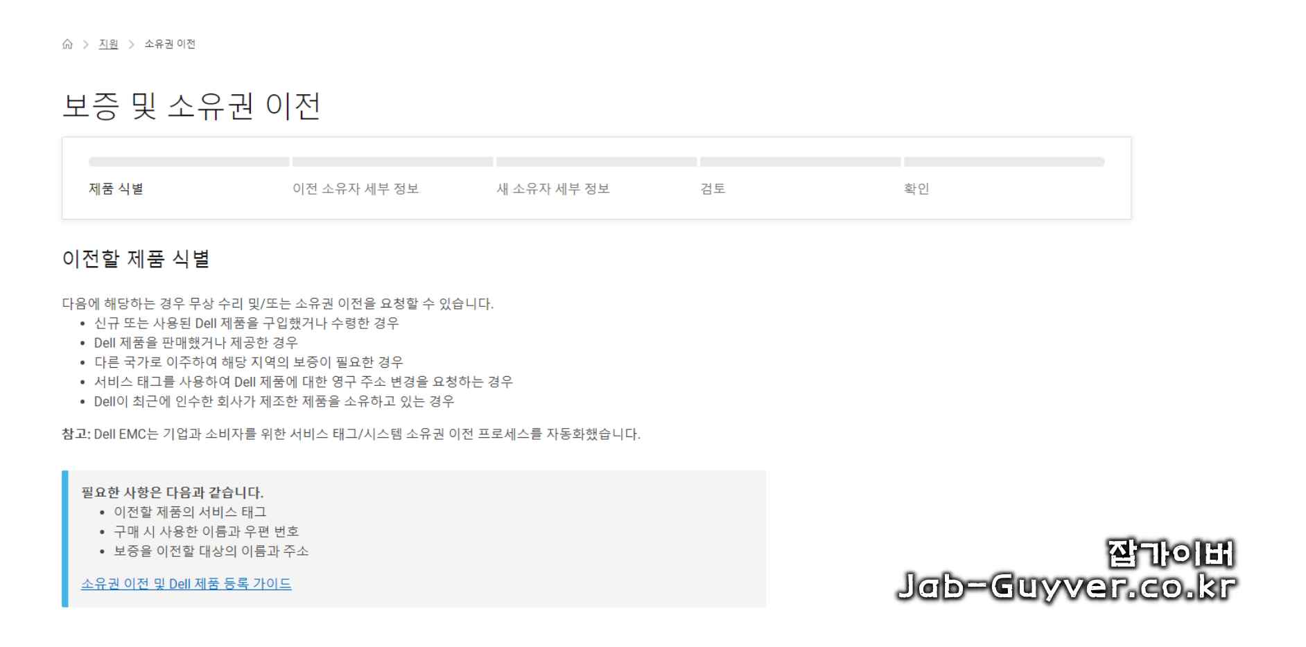 다음 소유권 이전 신청을 위해서 델 공식 웹사이트에서 소유권 이전 신청을 시작했습니다.