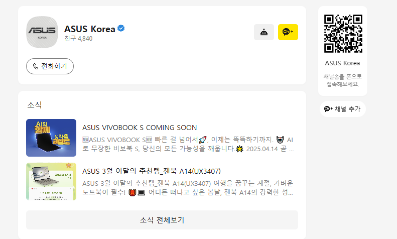 고객들이 직접 방문하지 않고도 온라인 택배 서비스를 통해 서비스를 받을 수도 있으며 그 외에도 또한 ASUS 공식 홈페이지나 카카오톡 플러스친구 채널(@ASUS Korea)을 통해 고객 서비스 관련 상세 내용을 확인할 수 있습니다.