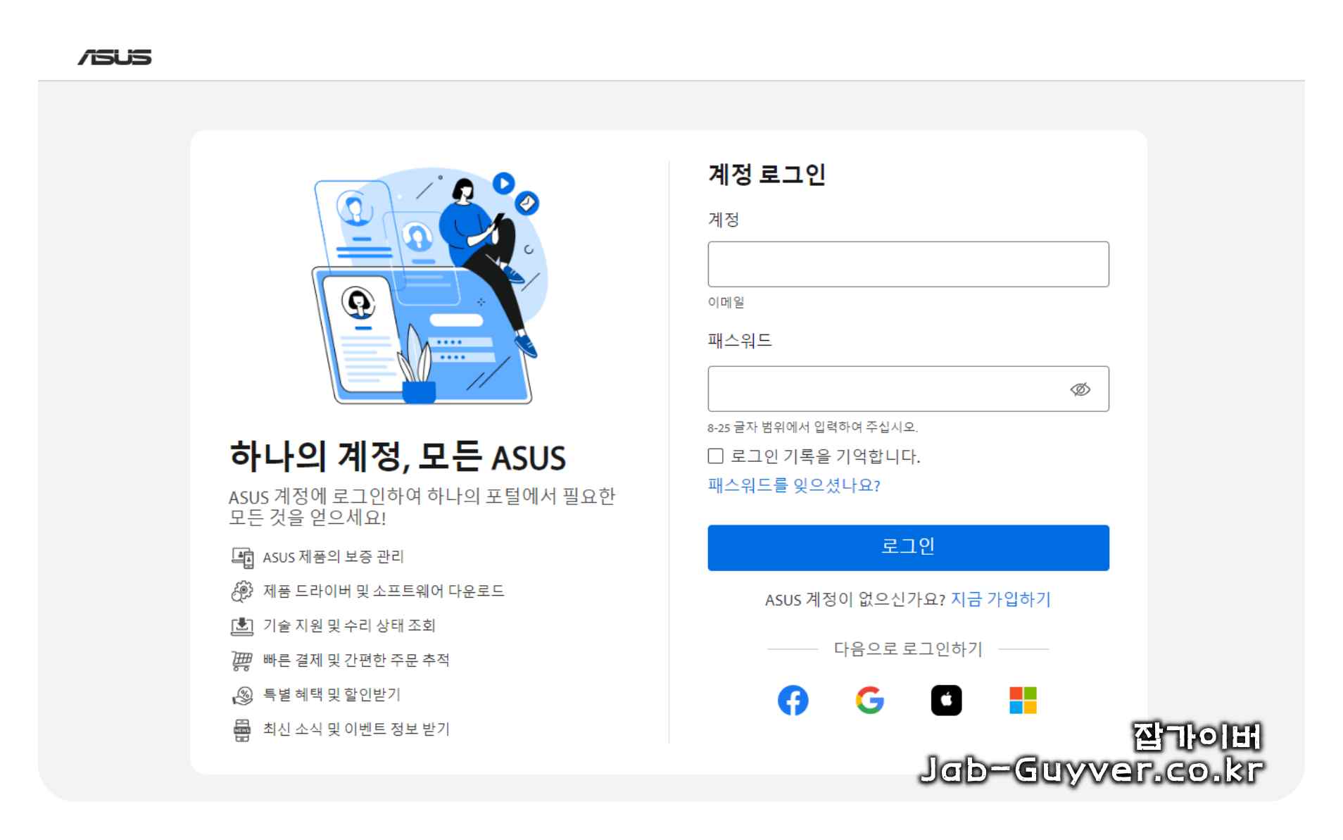 - 제품 등록: 아수스 공식 웹사이트나 지역별 아수스 지원 웹사이트에서 제품 등록을 진행하세요. 이때, 제품의 시리얼 번호와 구입 영수증 정보를 입력해야 합니다.