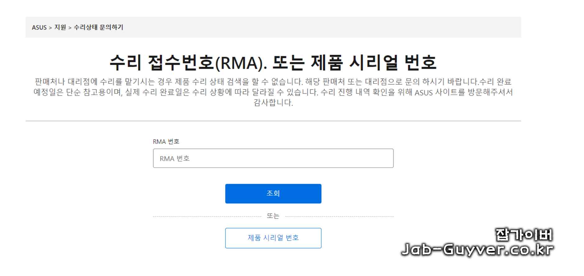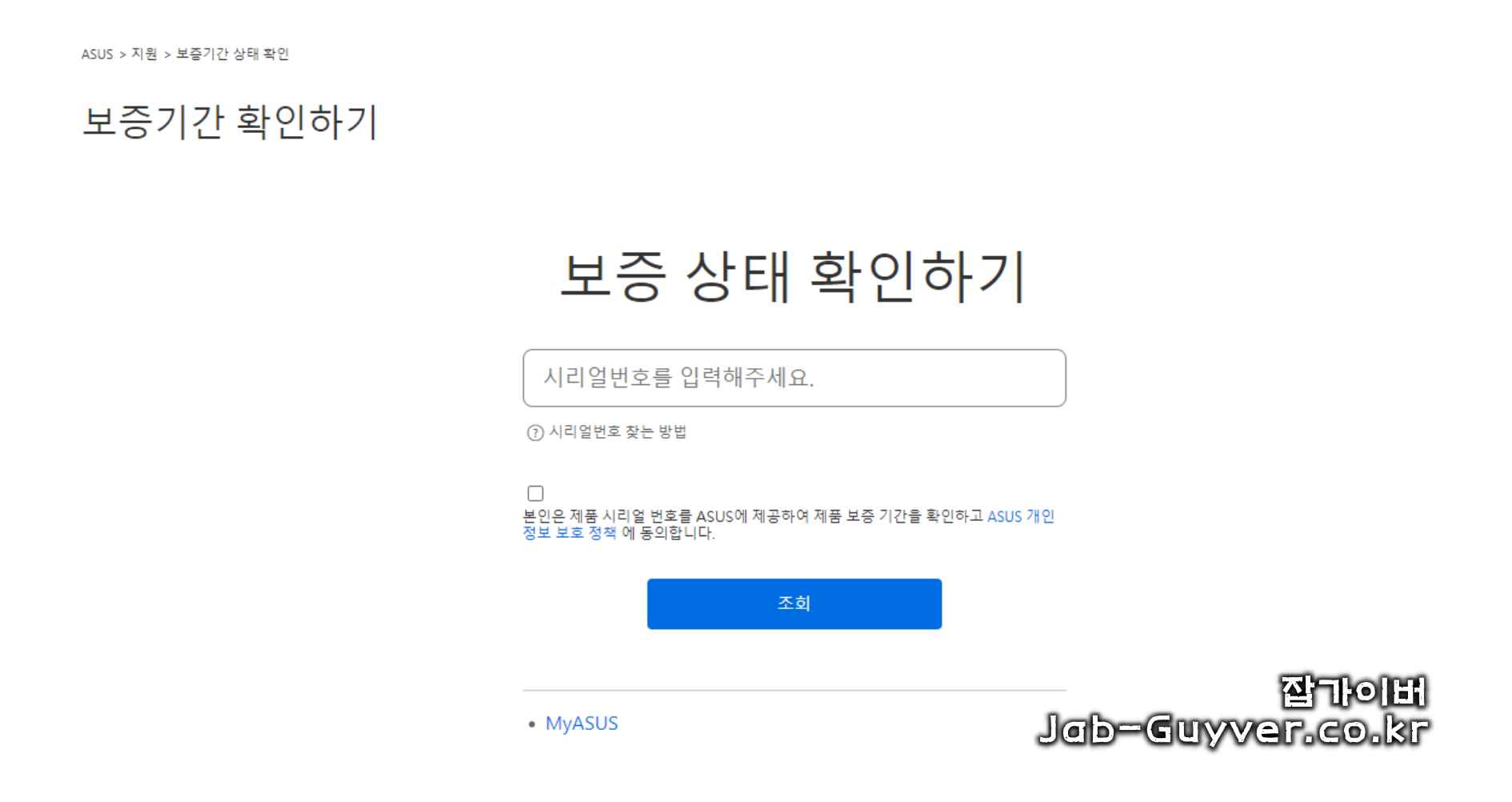 우선 아수스 홈페이지를 통해 무상워런티 기간을 조회합니다.