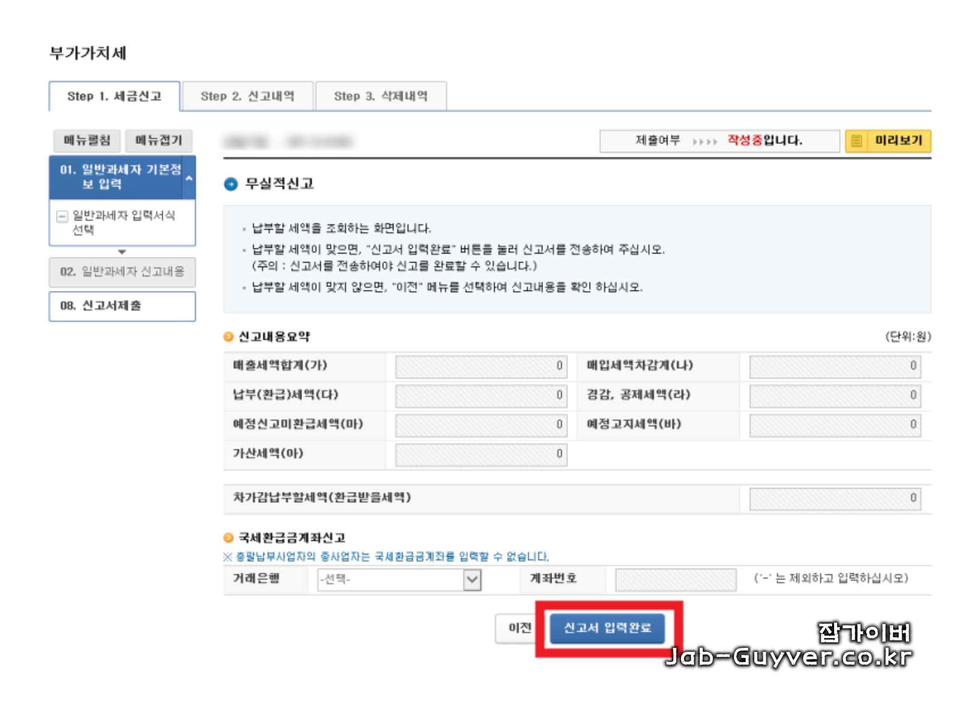 부가가치세 무실적 신고 - 주의사항과 참고