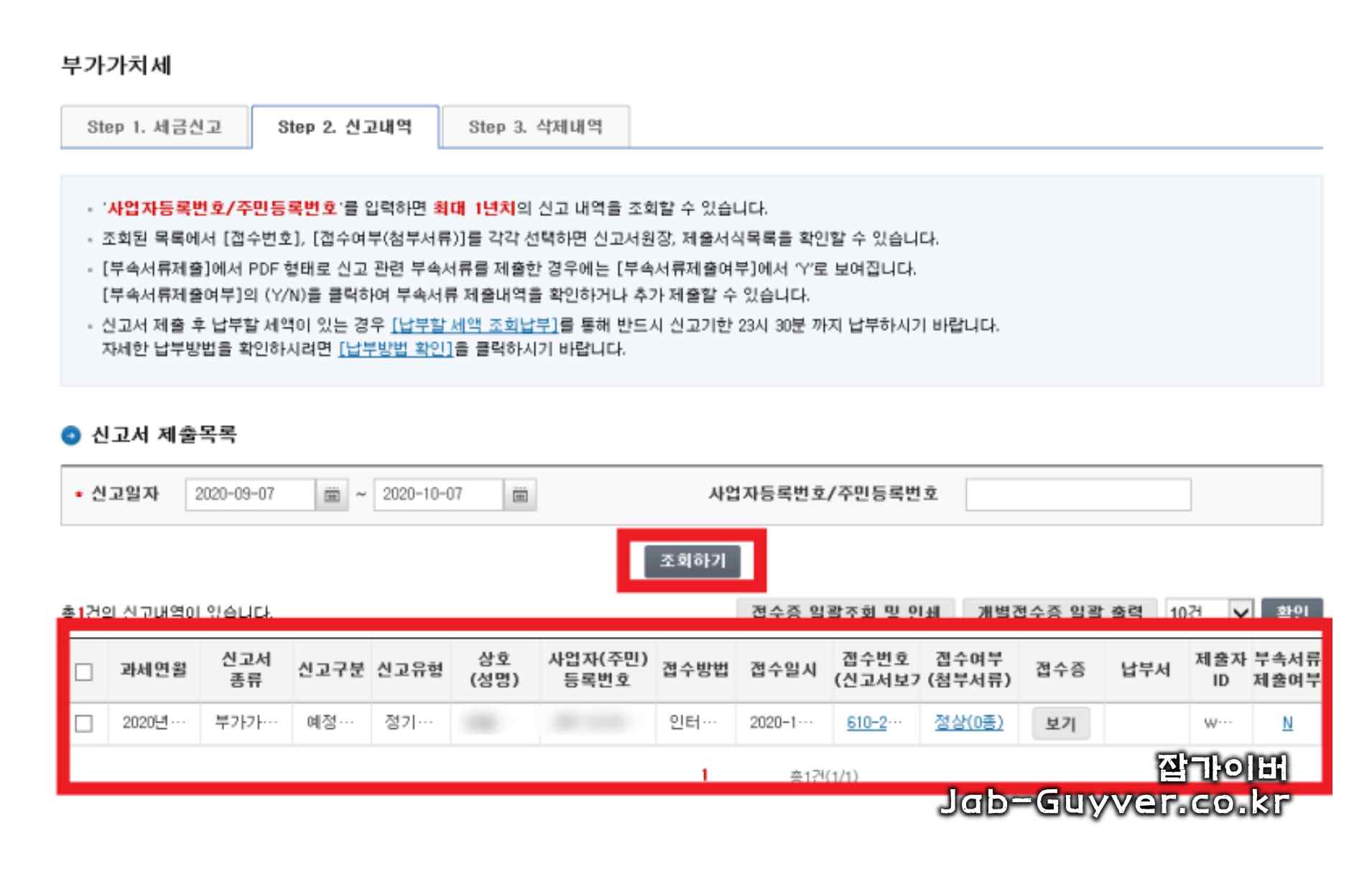 | 4단계 | 사업자등록번호 입력 → 조회 |